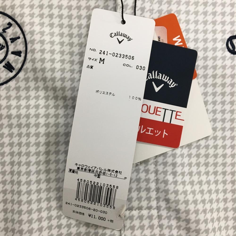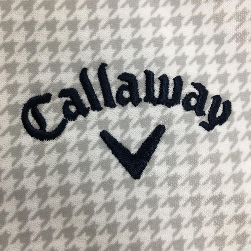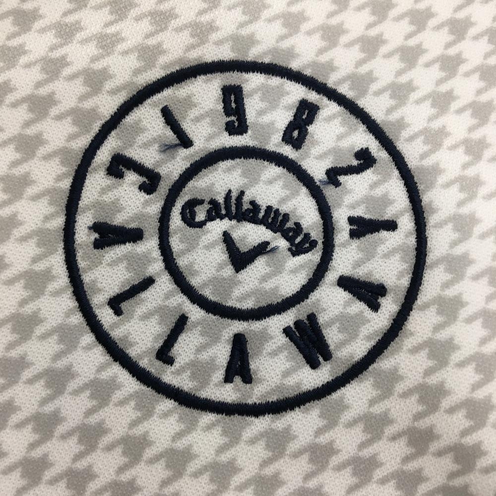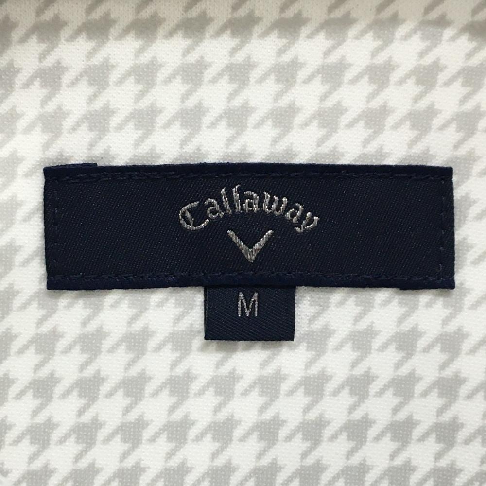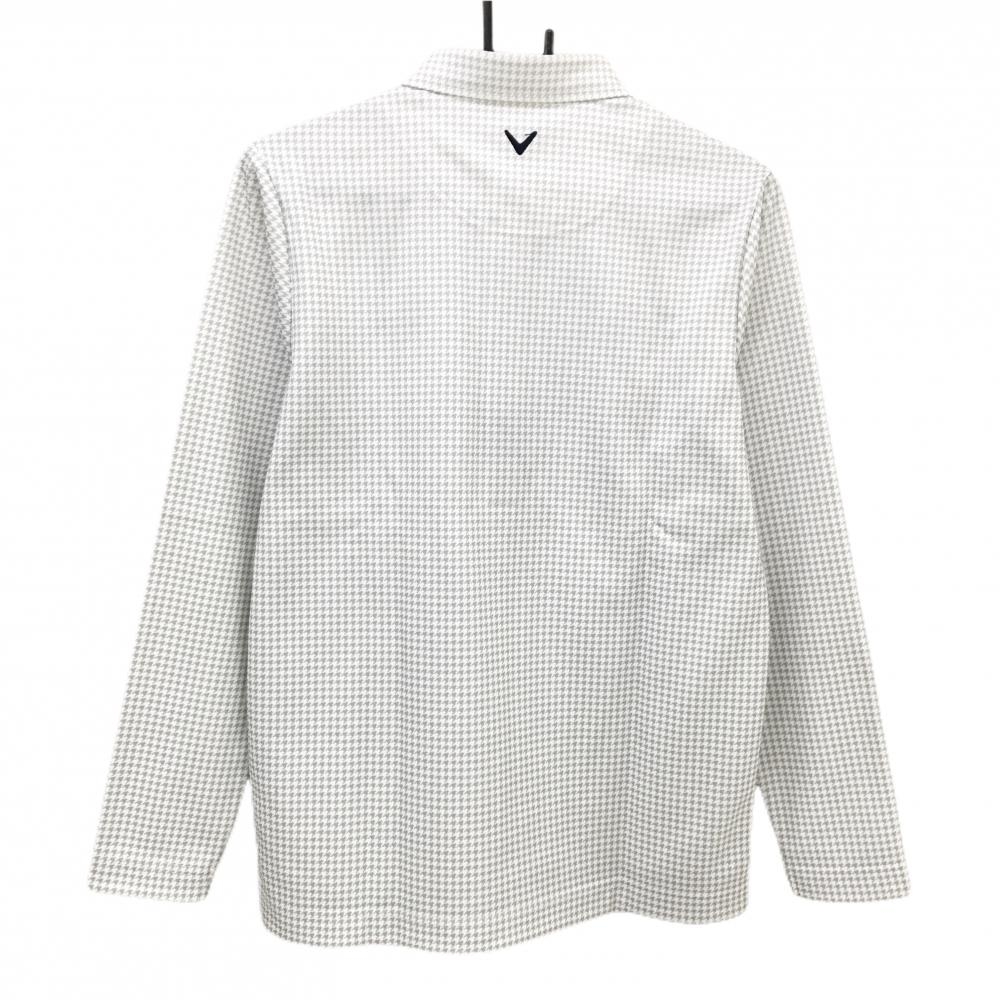 【新品】キャロウェイ 長袖ポロシャツ 白×グレー 千鳥格子 ボタンダウン 裏微起毛 メンズ M ゴルフウェア Callaway