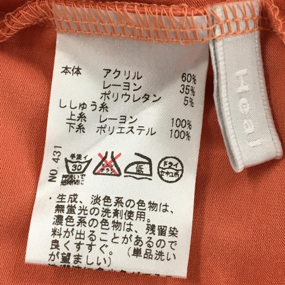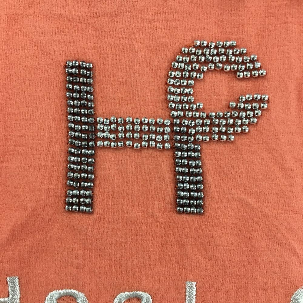 【美品】ヒールクリーク 長袖ハイネックシャツ ライトオレンジ 表微起毛 ストレッチ ビーズロゴ レディース 42(L) ゴルフウェア Heal Creek