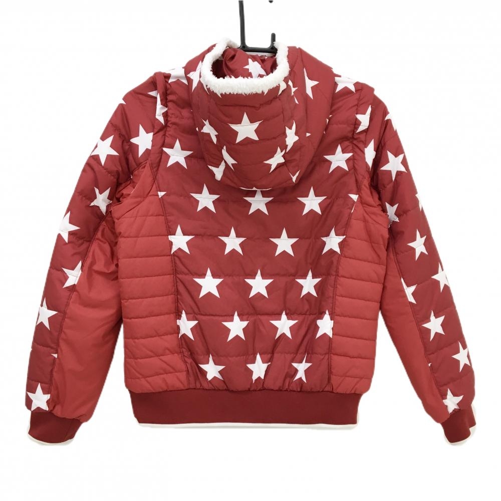 キャロウェイ 2WAY中綿ジャケット レッド×白 星柄 ベアワッペン 袖着脱可 レディース M ゴルフウェア Callaway