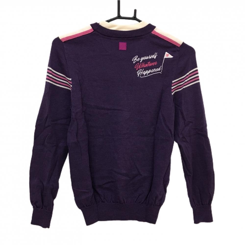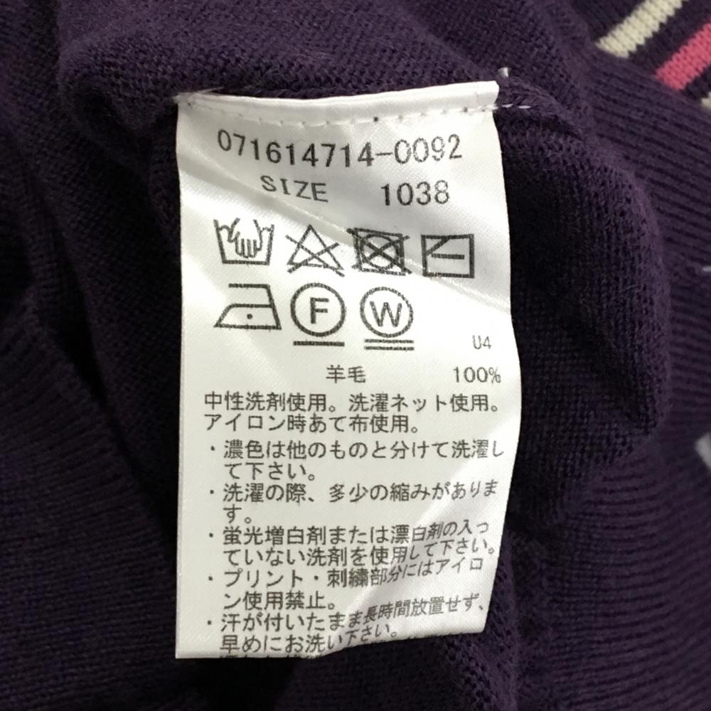【美品】ゾーイ セーター パープル×ピンク×白 肩ライン ニット レディース 38(M) ゴルフウェア ZOY
