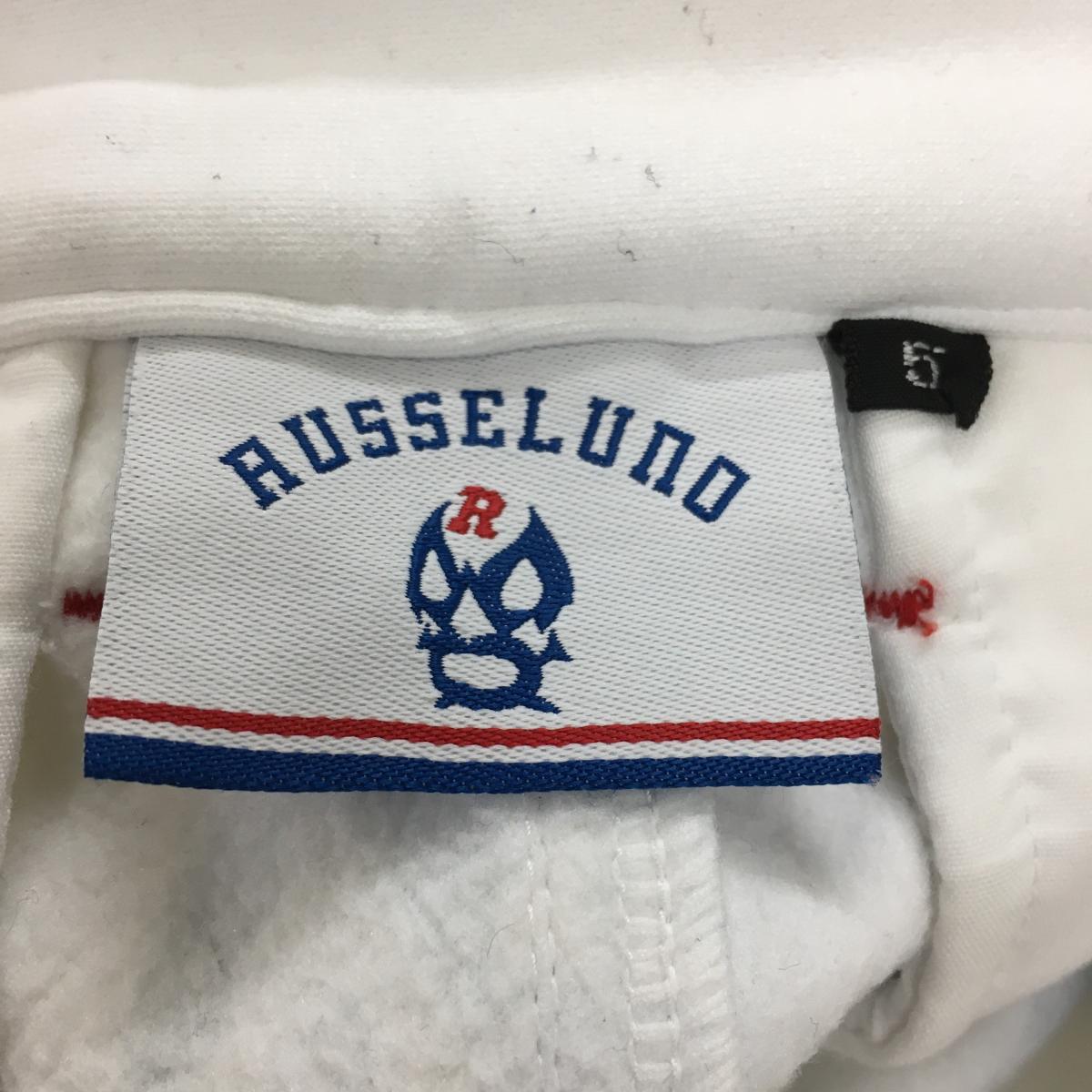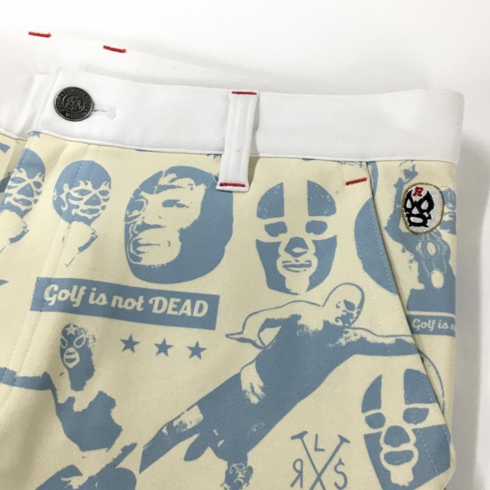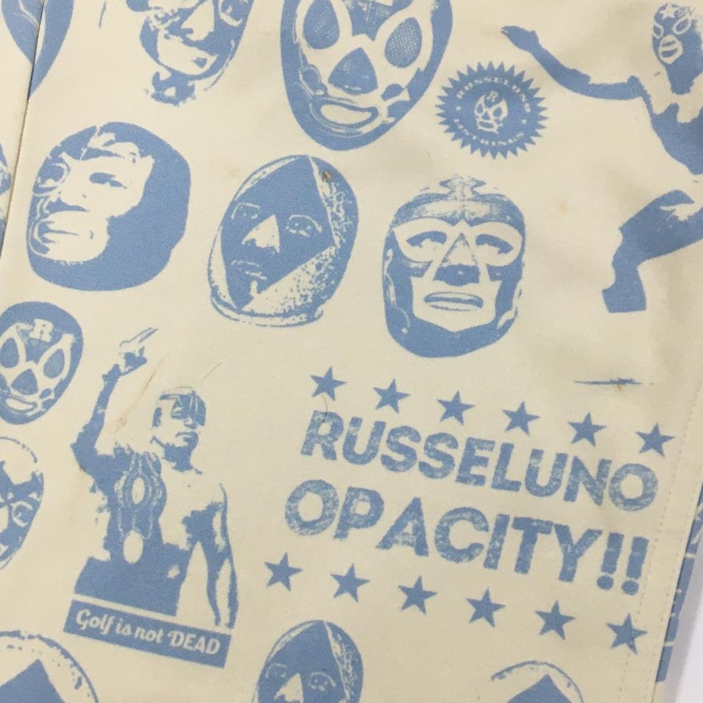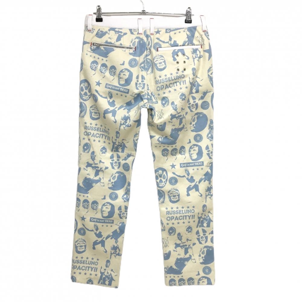 【美品】ラッセルノ パンツ アイボリー×ライトブルー ルチャ総柄 裏起毛 メンズ 5(L) ゴルフウェア RUSSELUNO