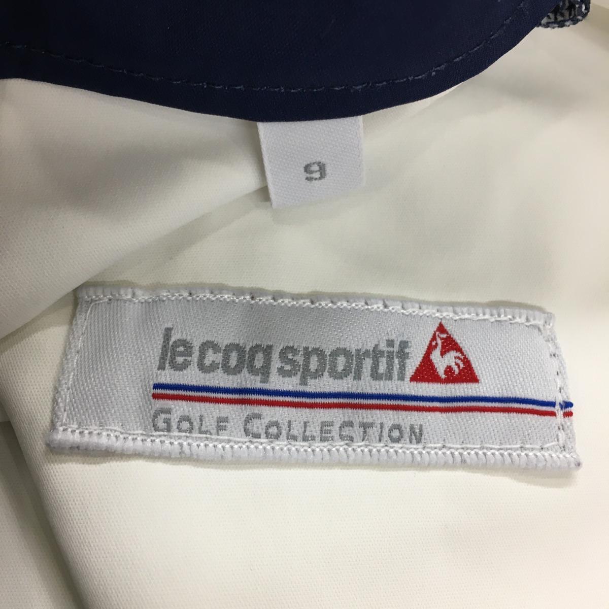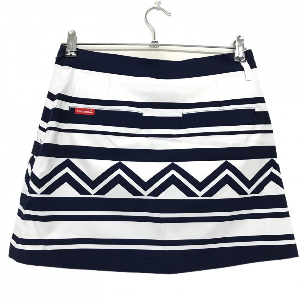 【超美品】ルコックゴルフ スカート ネイビー×白 ボーダー ロゴレッド レディース 9 ゴルフウェア le coq sportif
