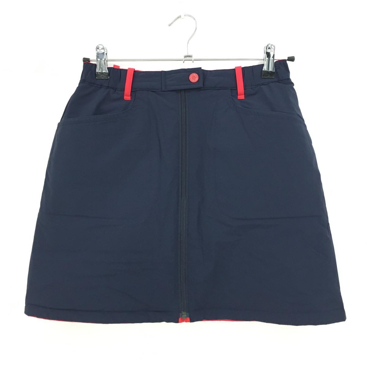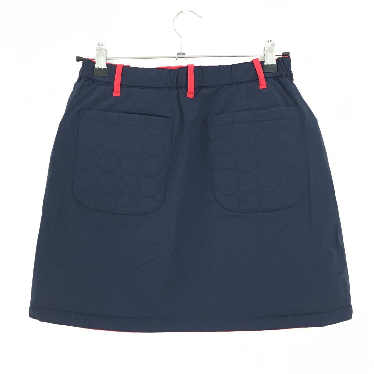 【超美品】マンシングウェア 中綿リバーシブルスカート レッド 裏ネイビー フロントジップ レディース M ゴルフウェア Munsingwear