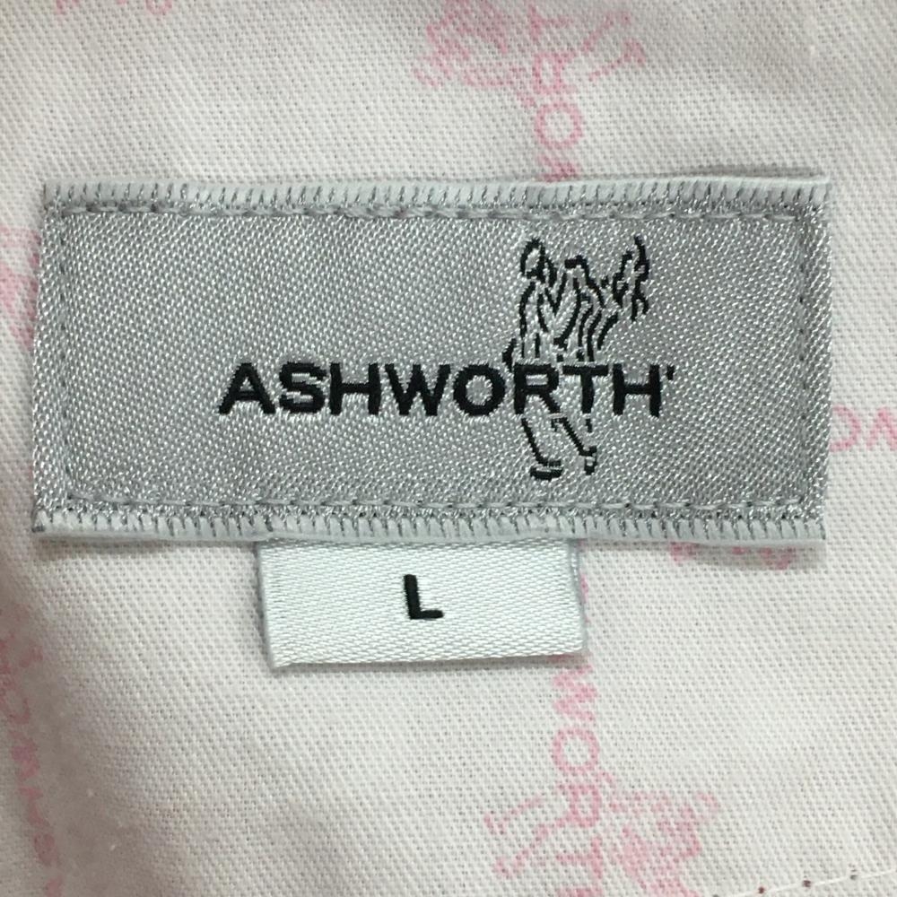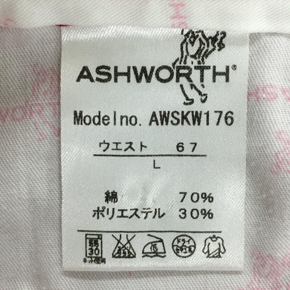 アシュワース 七分丈パンツ 白×レッド系 細目チェック 後ろロゴ レディース L ゴルフウェア ASHWORTH