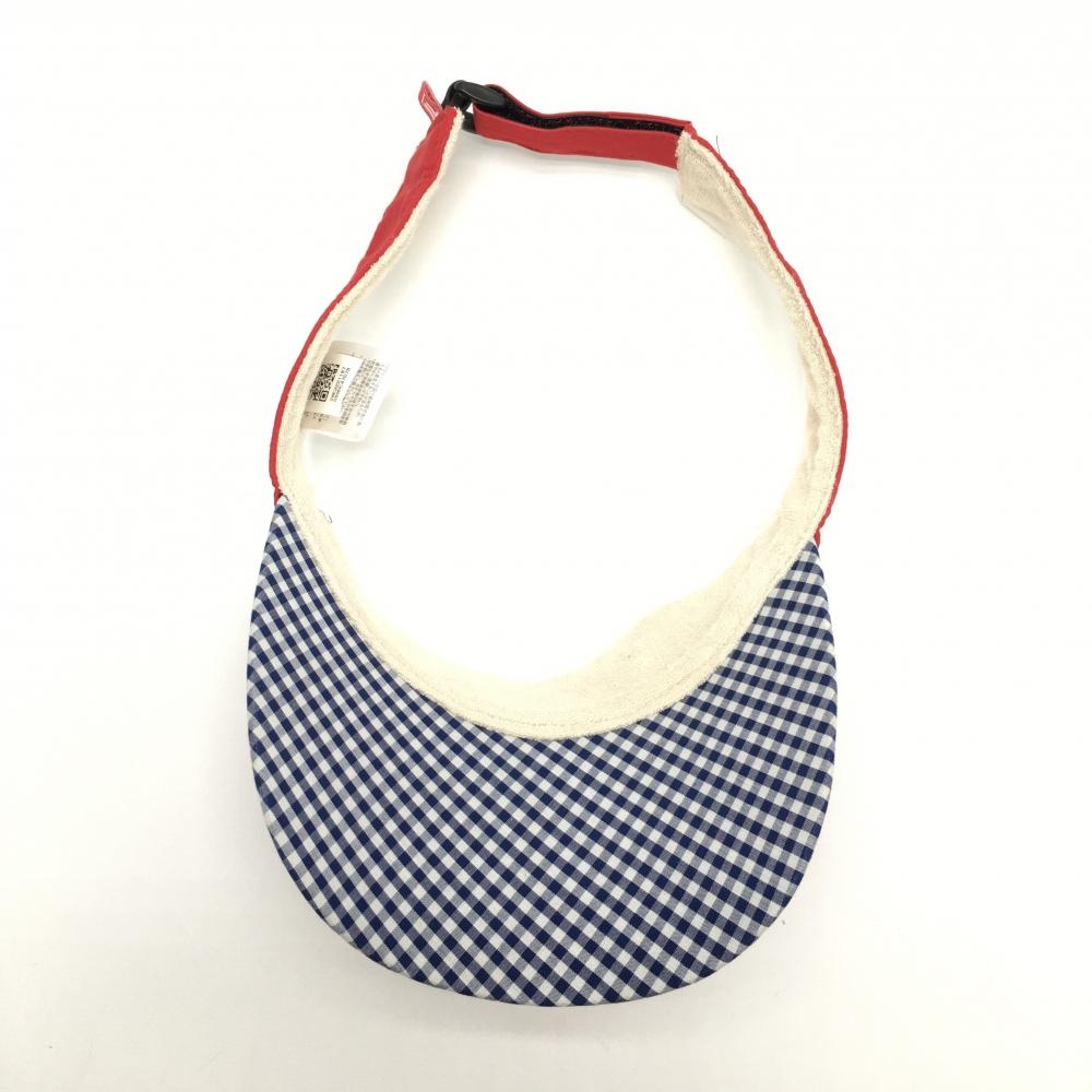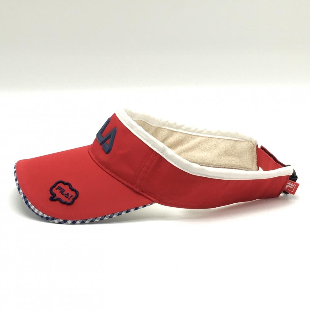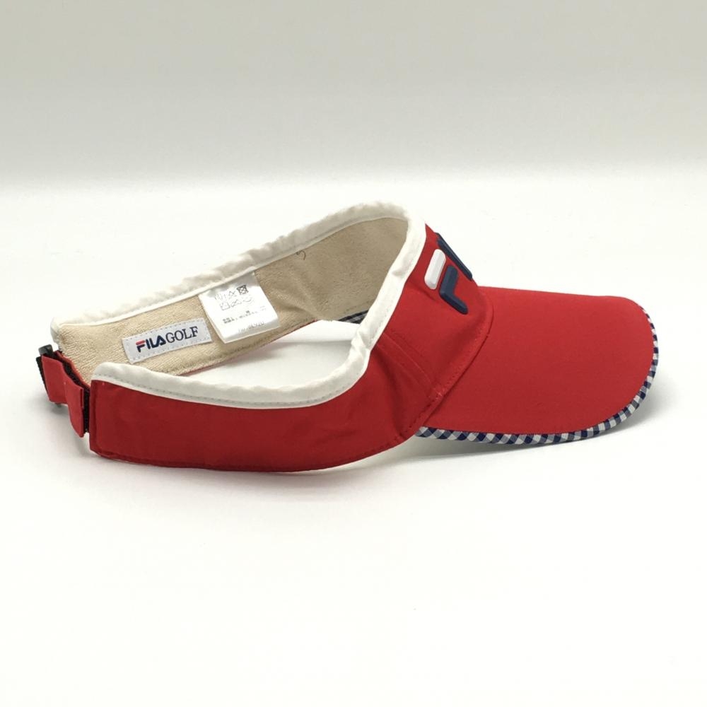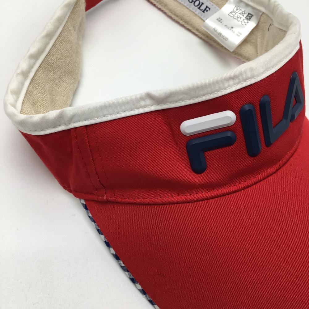 【美品】フィラゴルフ サンバイザー レッド×ネイビー 立体ロゴ つば裏ギンガムチェック ゴルフウェア FILA GOLF