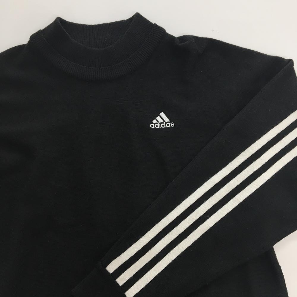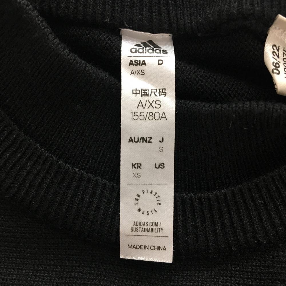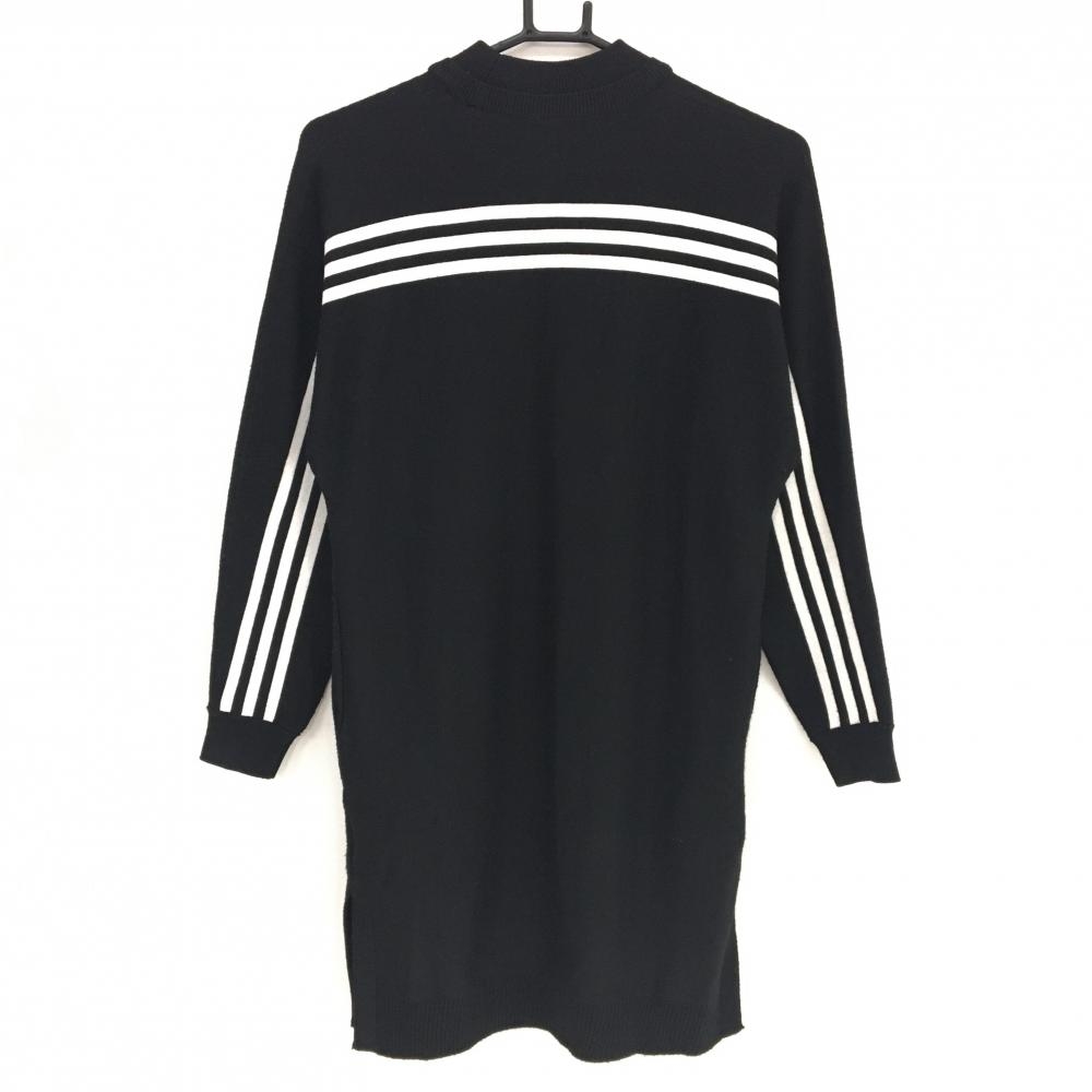 アディダス ニットワンピース 黒×白 3ライン ウール混 レディース S ゴルフウェア adidas