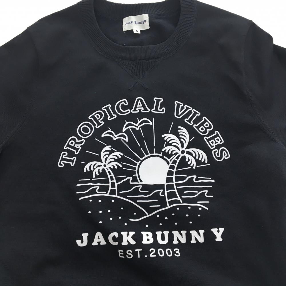 【美品】ジャックバニー セーター ネイビー×白 ヤシの木プリント メンズ 4(M) ゴルフウェア Jack Bunny