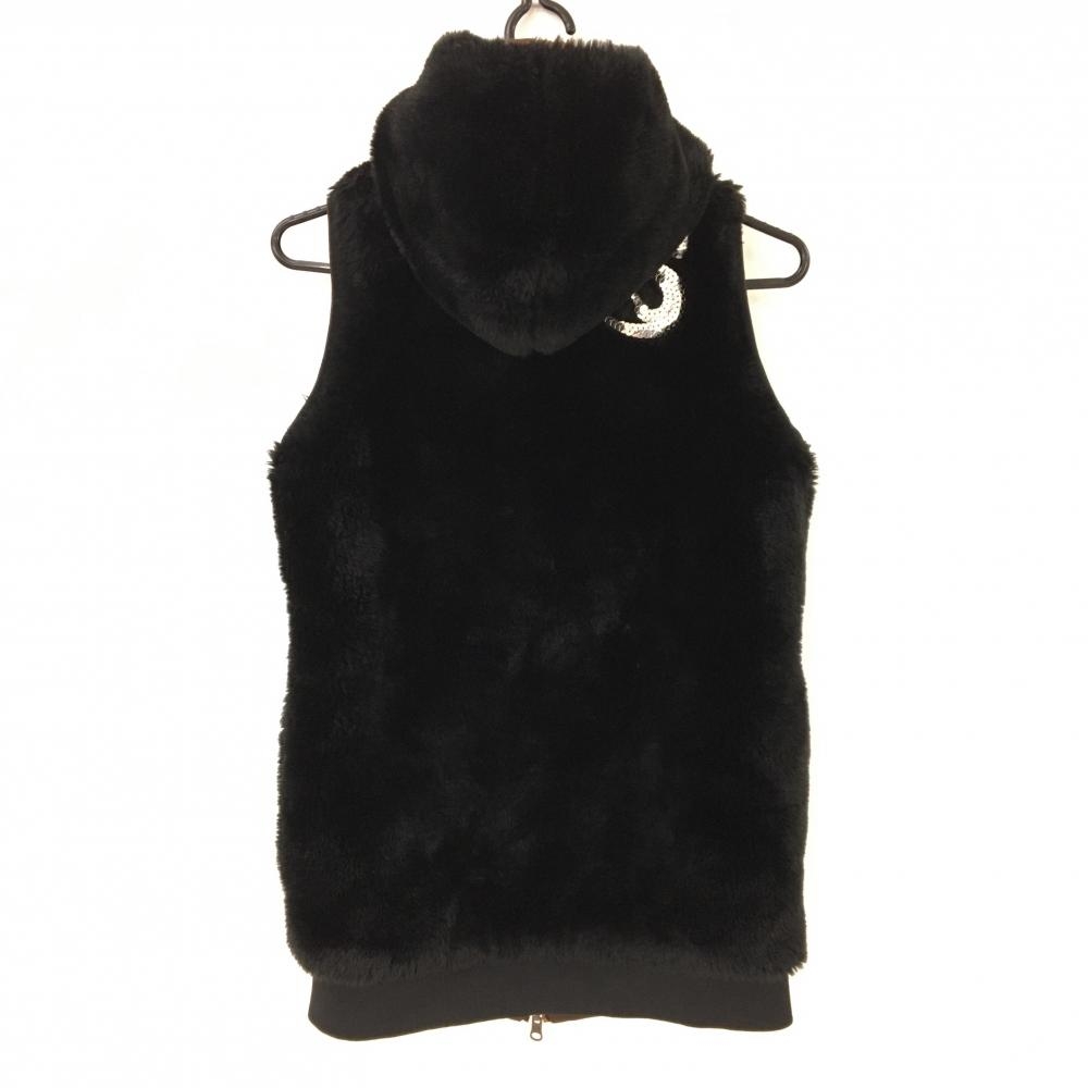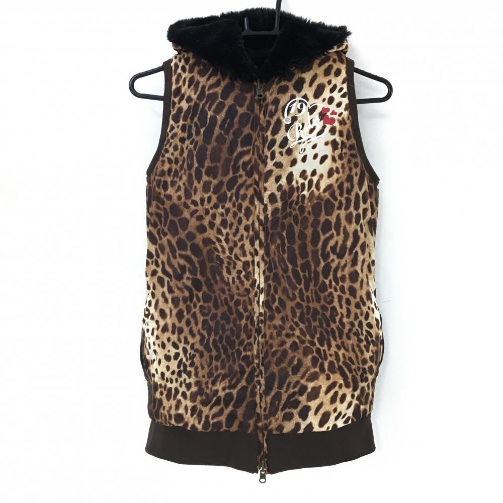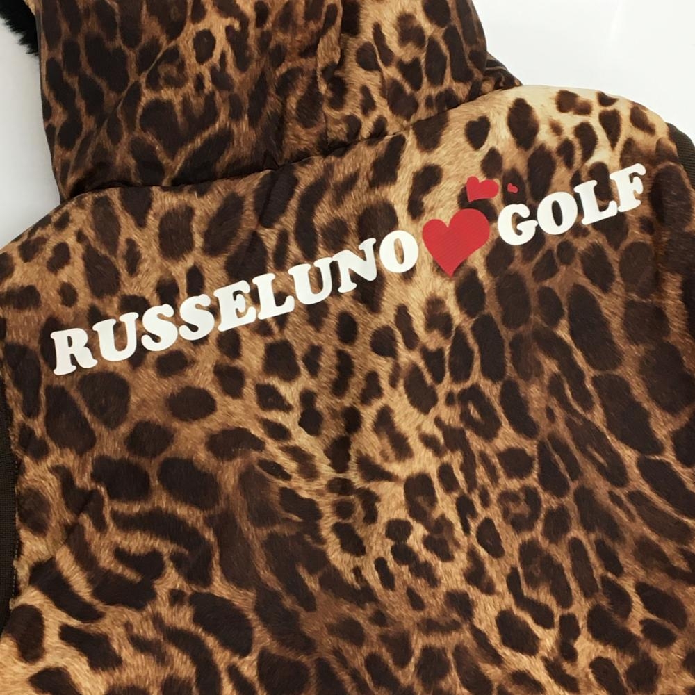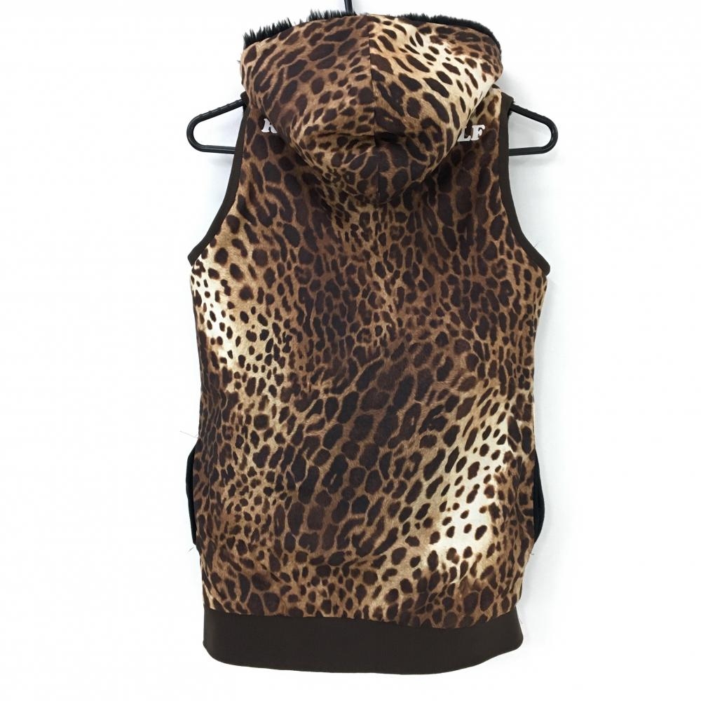 【超美品】ラッセルノ フード付リバーシブルボアベスト 黒 裏ブラウン レオパード柄 レディース M ゴルフウェア RUSSELUNO
