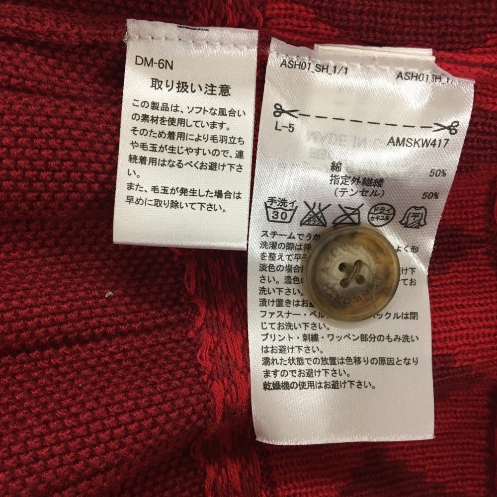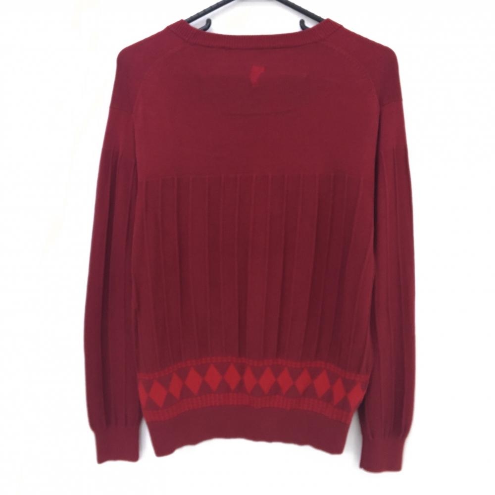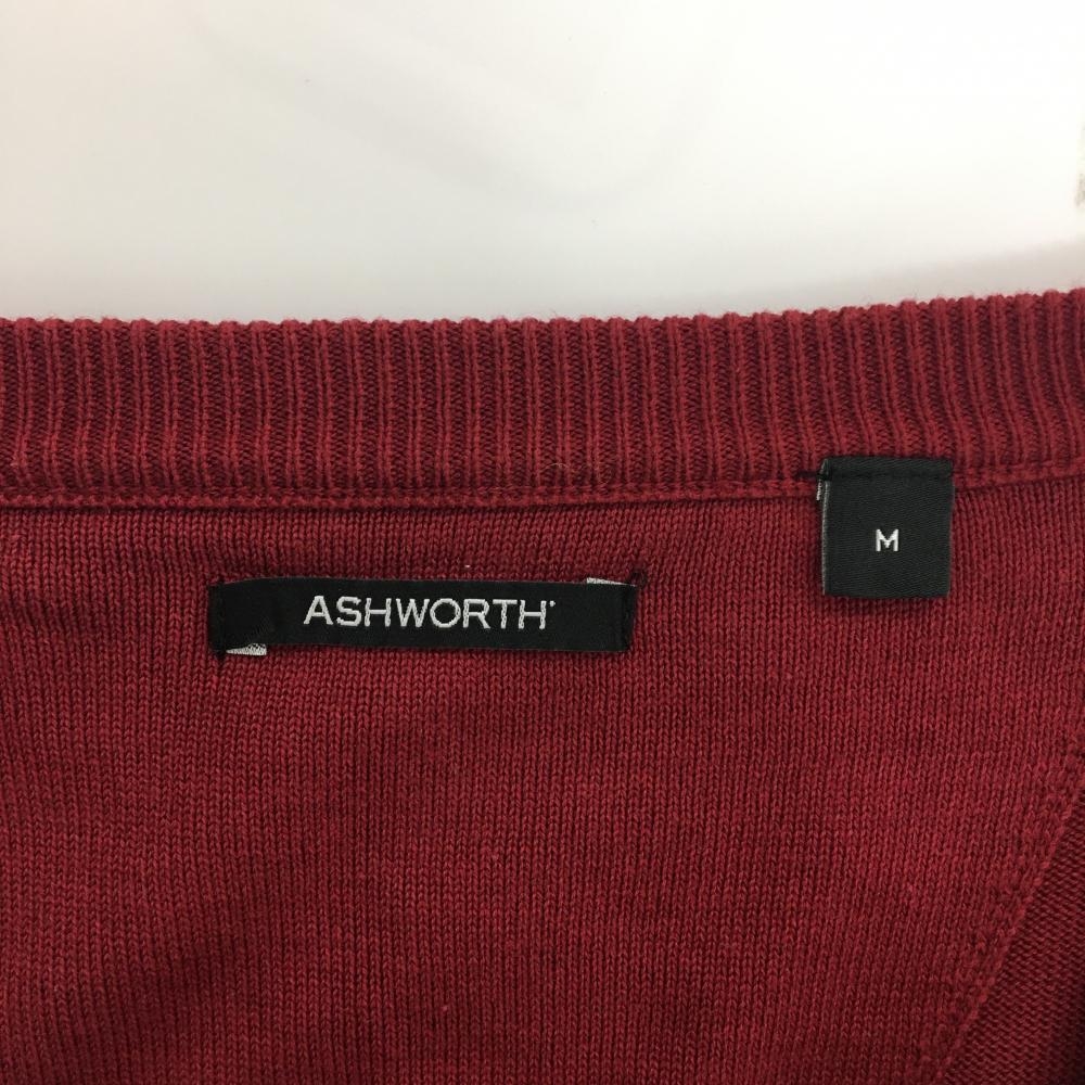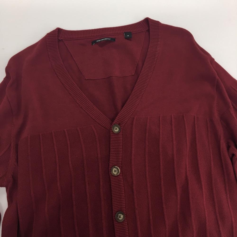 アシュワース カーディガン ボルドー 裾アーガイル コットン混 メンズ M ゴルフウェア ASHWORTH