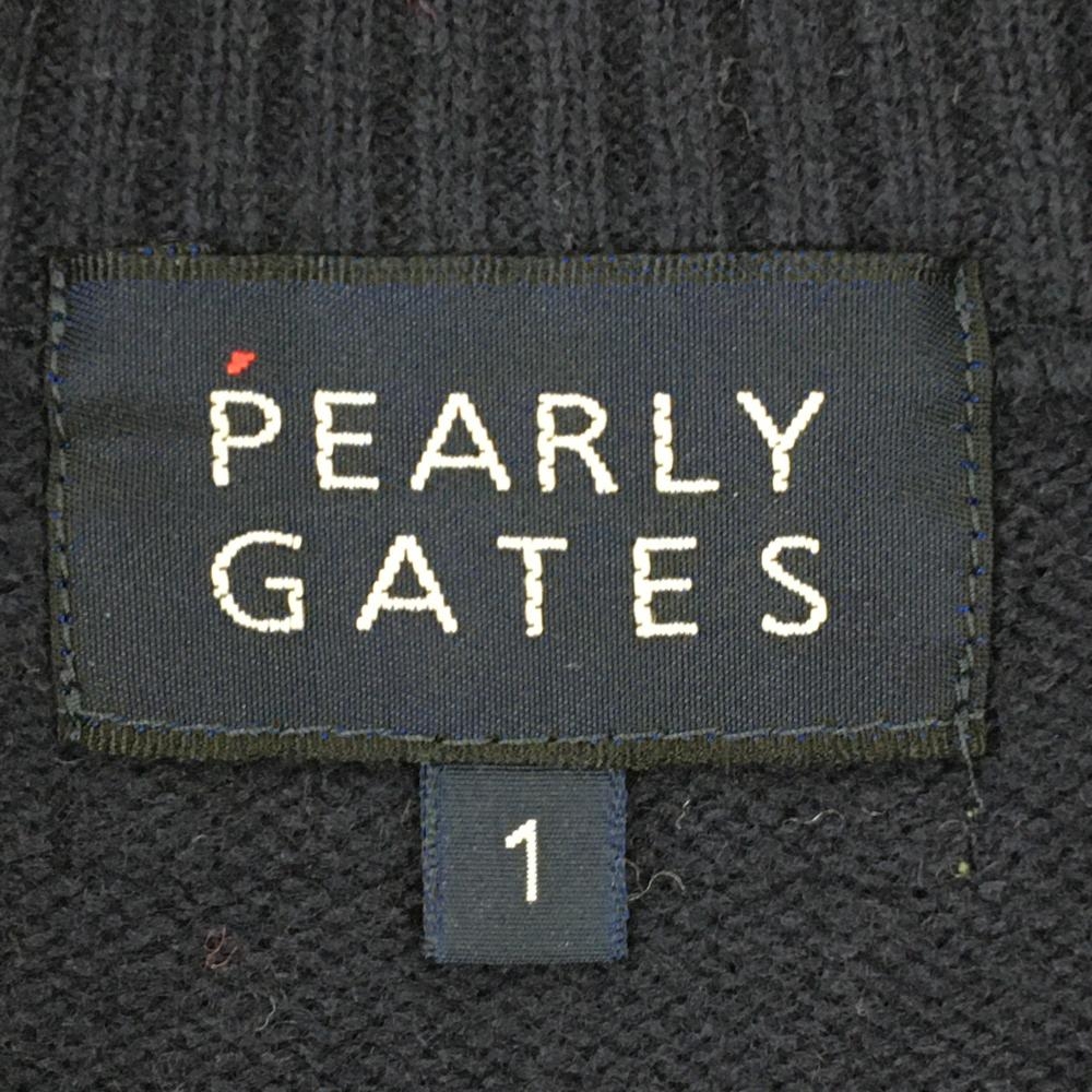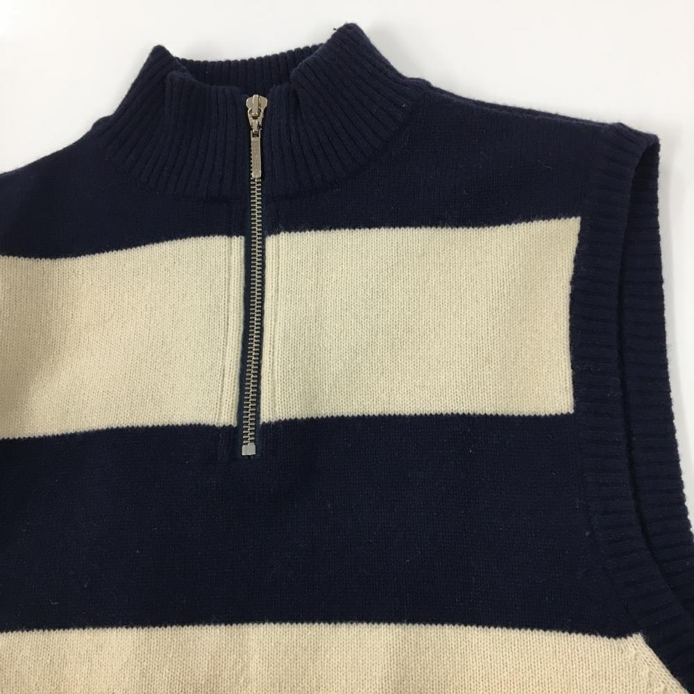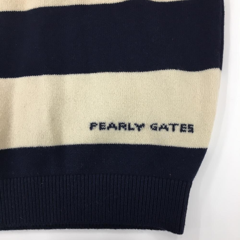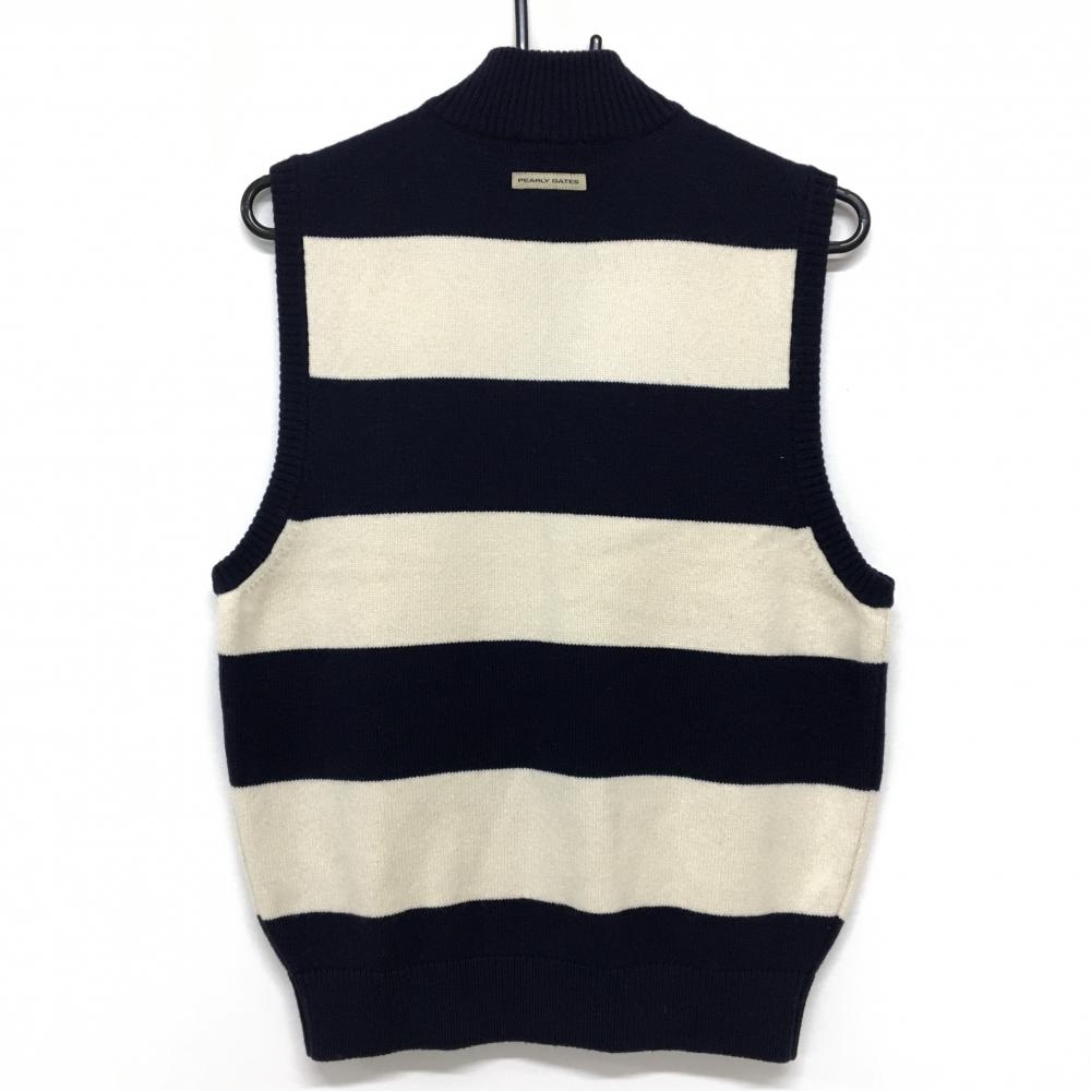 【美品】パーリーゲイツ ハイネックニットベスト アイボリー×ネイビー ボーダー ハーフジップ レディース 1(M) ゴルフウェア PEARLY GATES