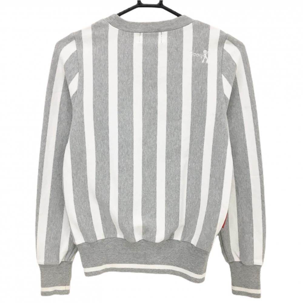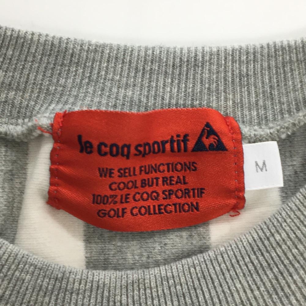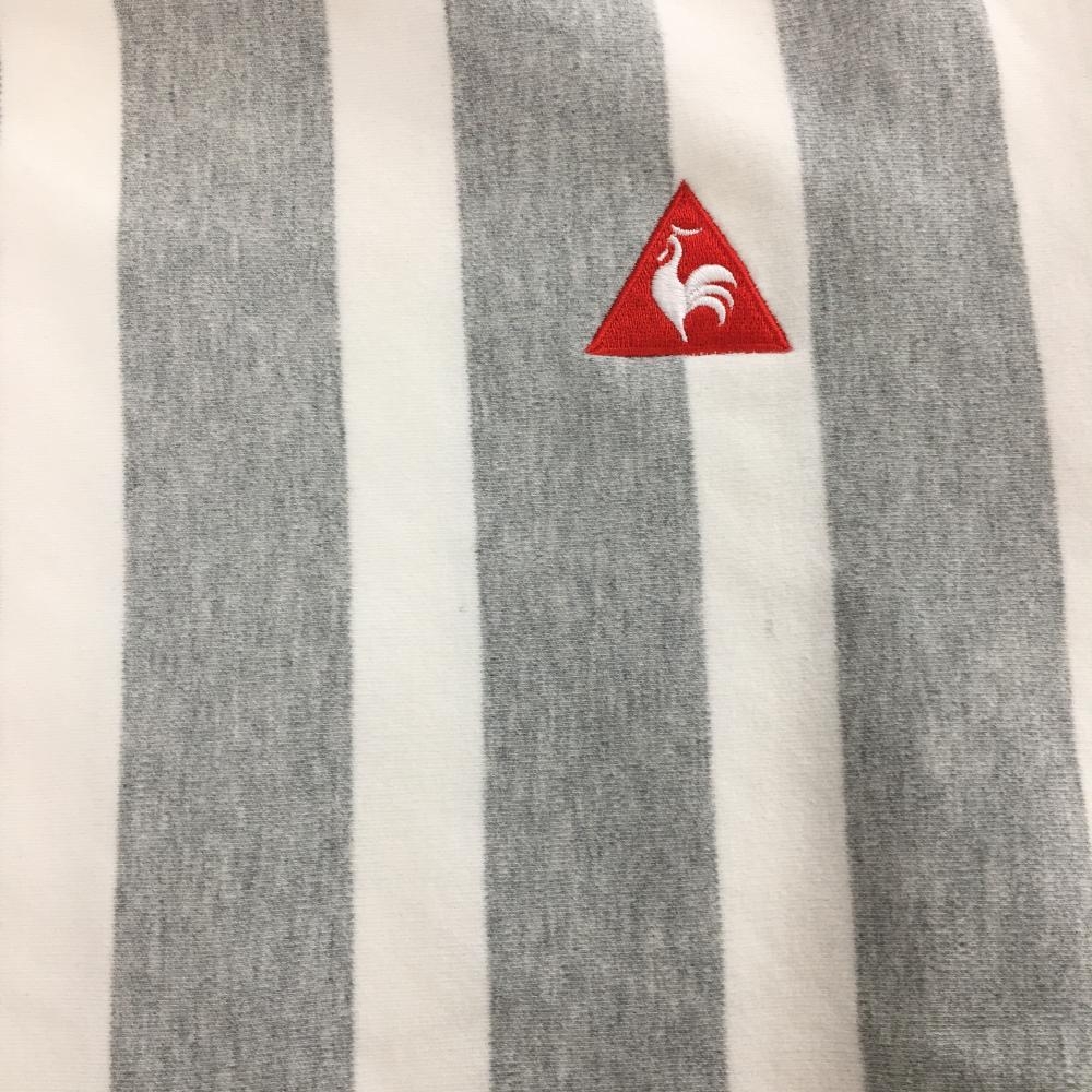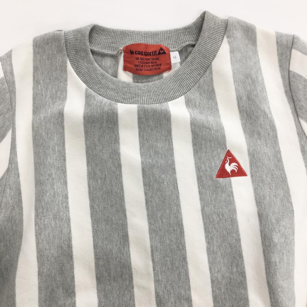 ルコックゴルフ トレーナー グレー×白 ストライプ ロゴレッド 微起毛 レディース M ゴルフウェア le coq sportif