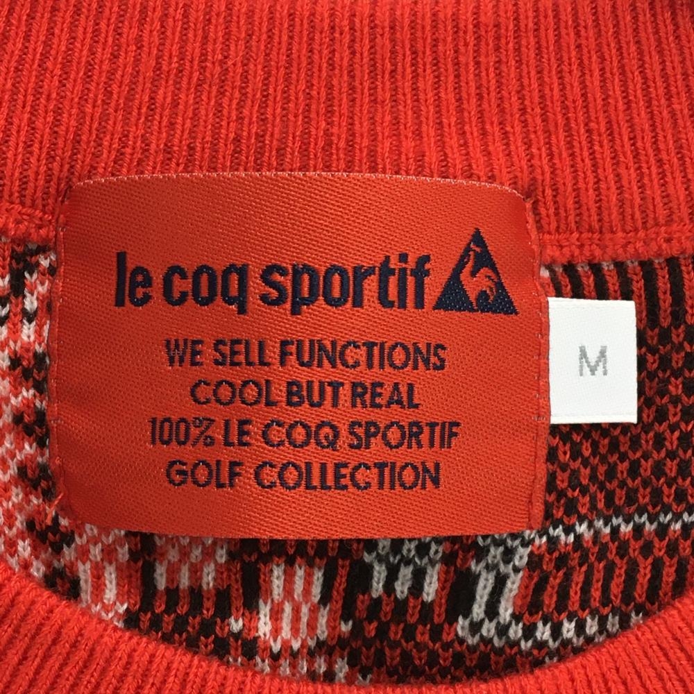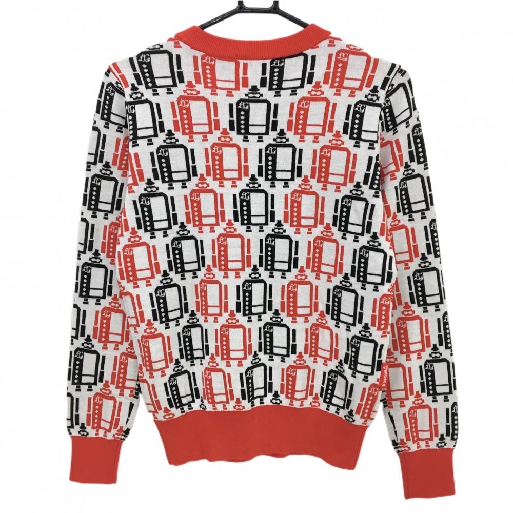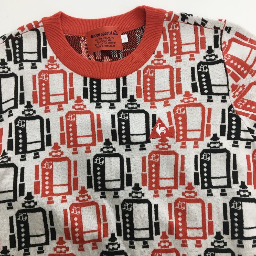 【超美品】ルコックゴルフ セーター 白×レッド ロボット総柄 ロゴ刺しゅう ニット レディース M ゴルフウェア le coq sportif