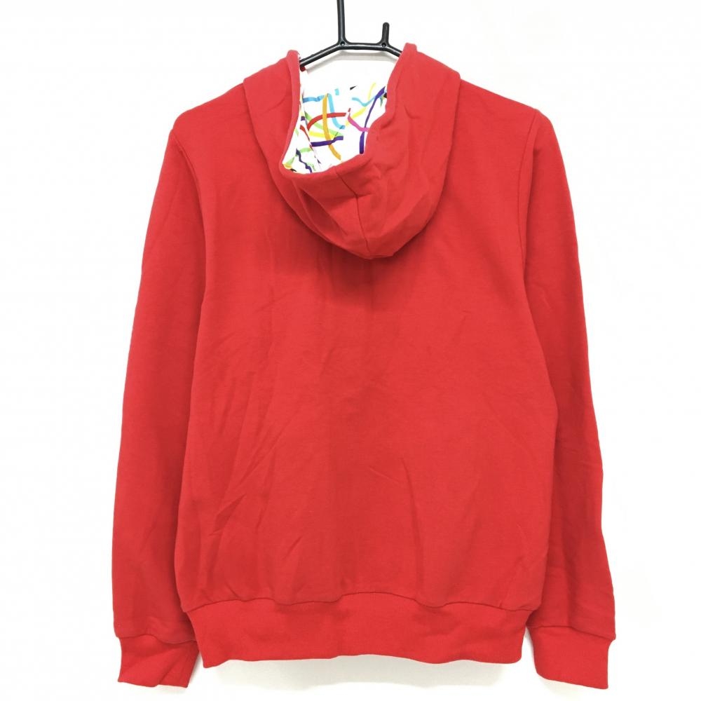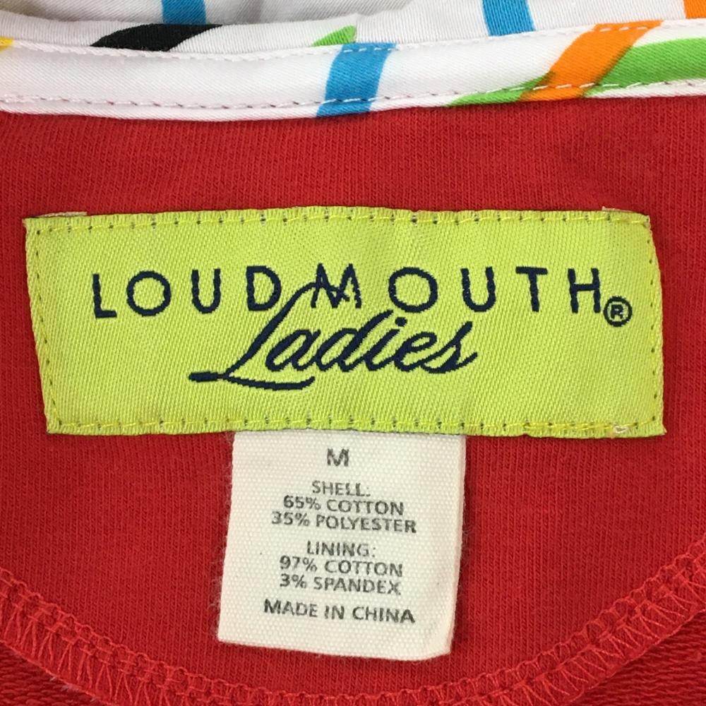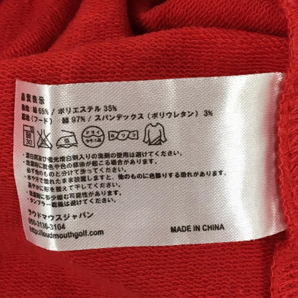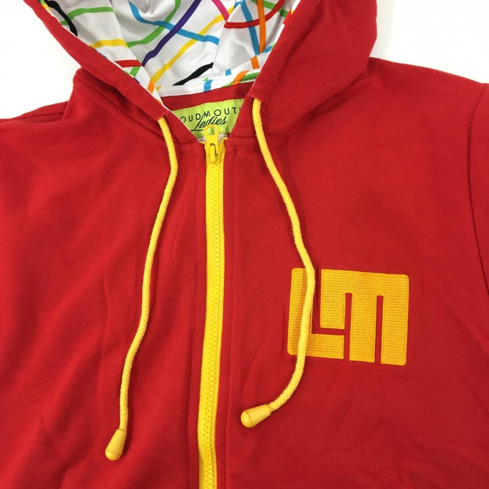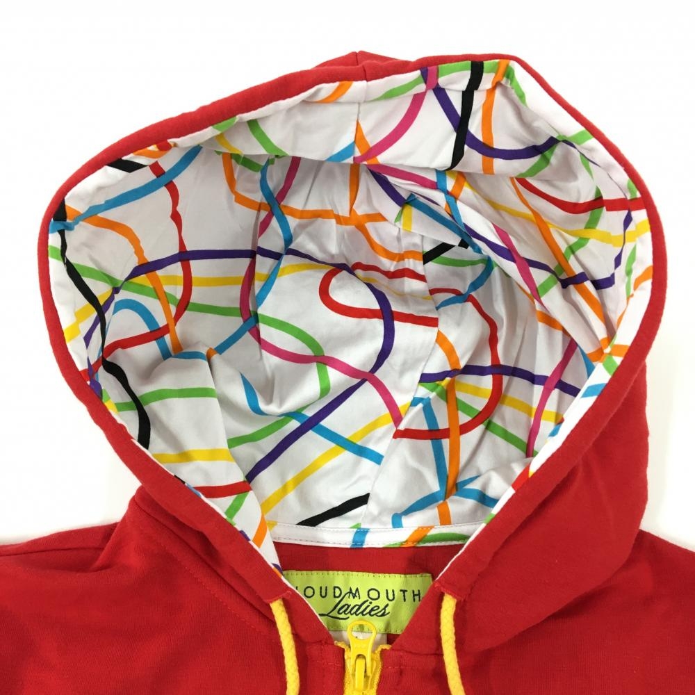 【美品】ラウドマウス ジップパーカー レッド×オレンジイエロー ビッグロゴ刺しゅう フード内側柄 レディース M ゴルフウェア LOUDMOUTH