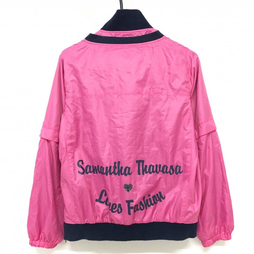 サマンサタバサNo.7 ツインスニード ピンク×ネイビー 袖着脱可 裏地付き ブルゾン レディース 40 ゴルフウェア Samantha Thavasa