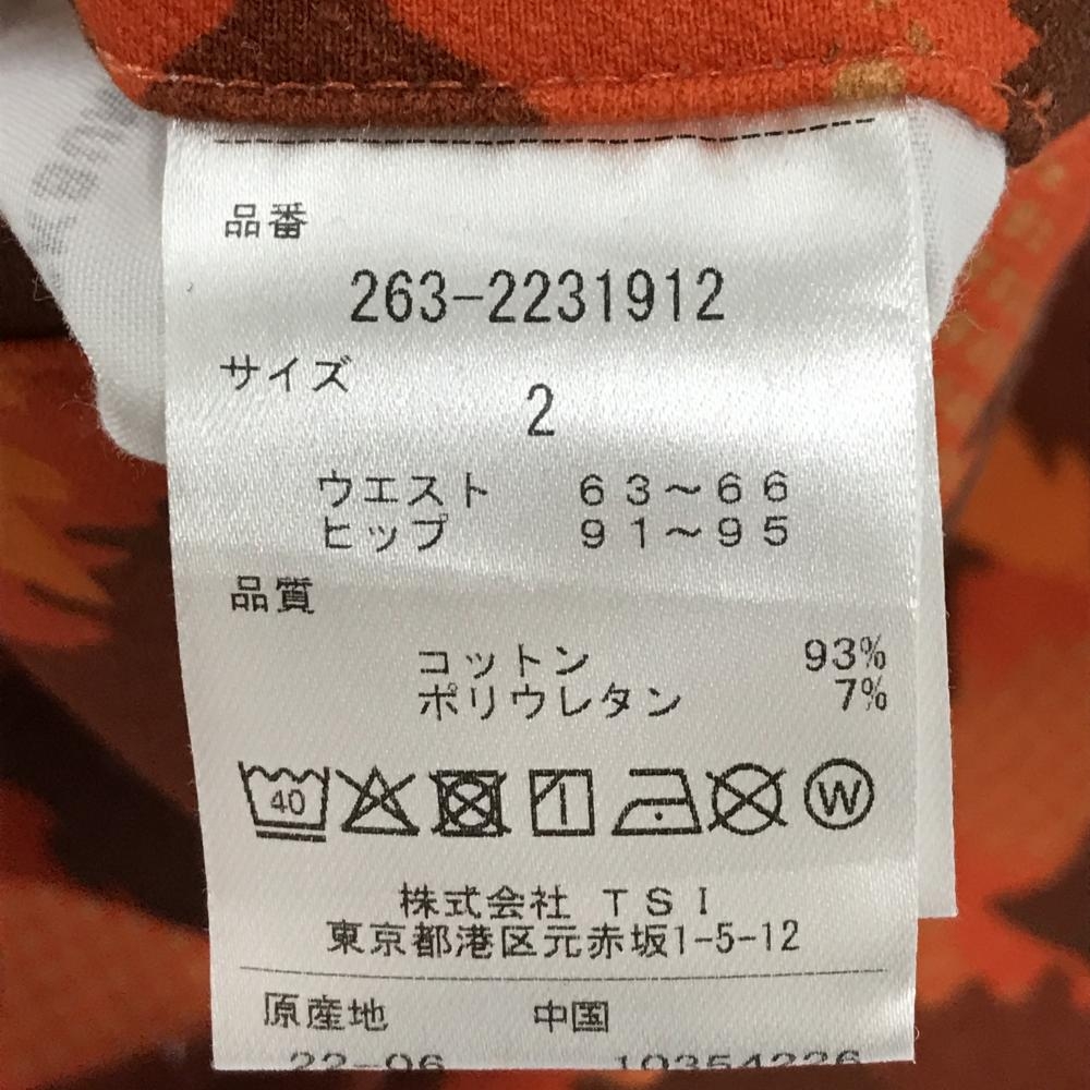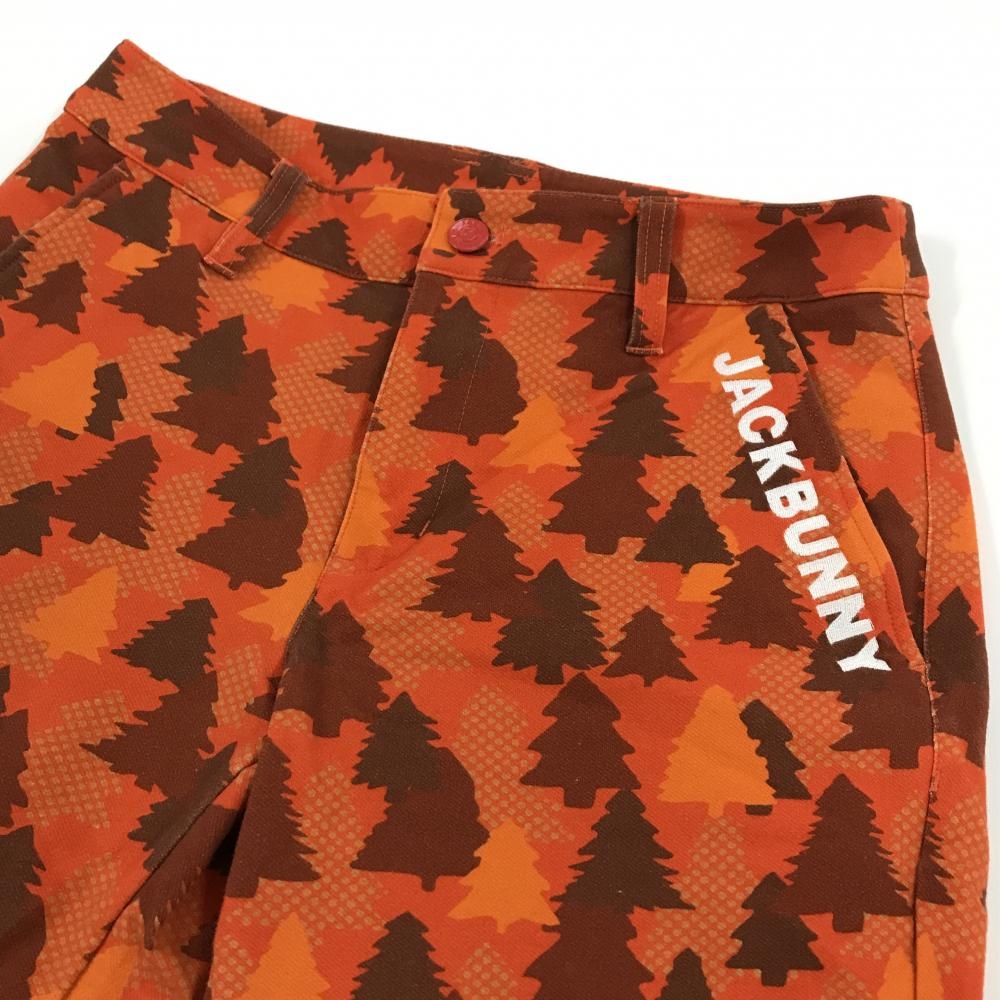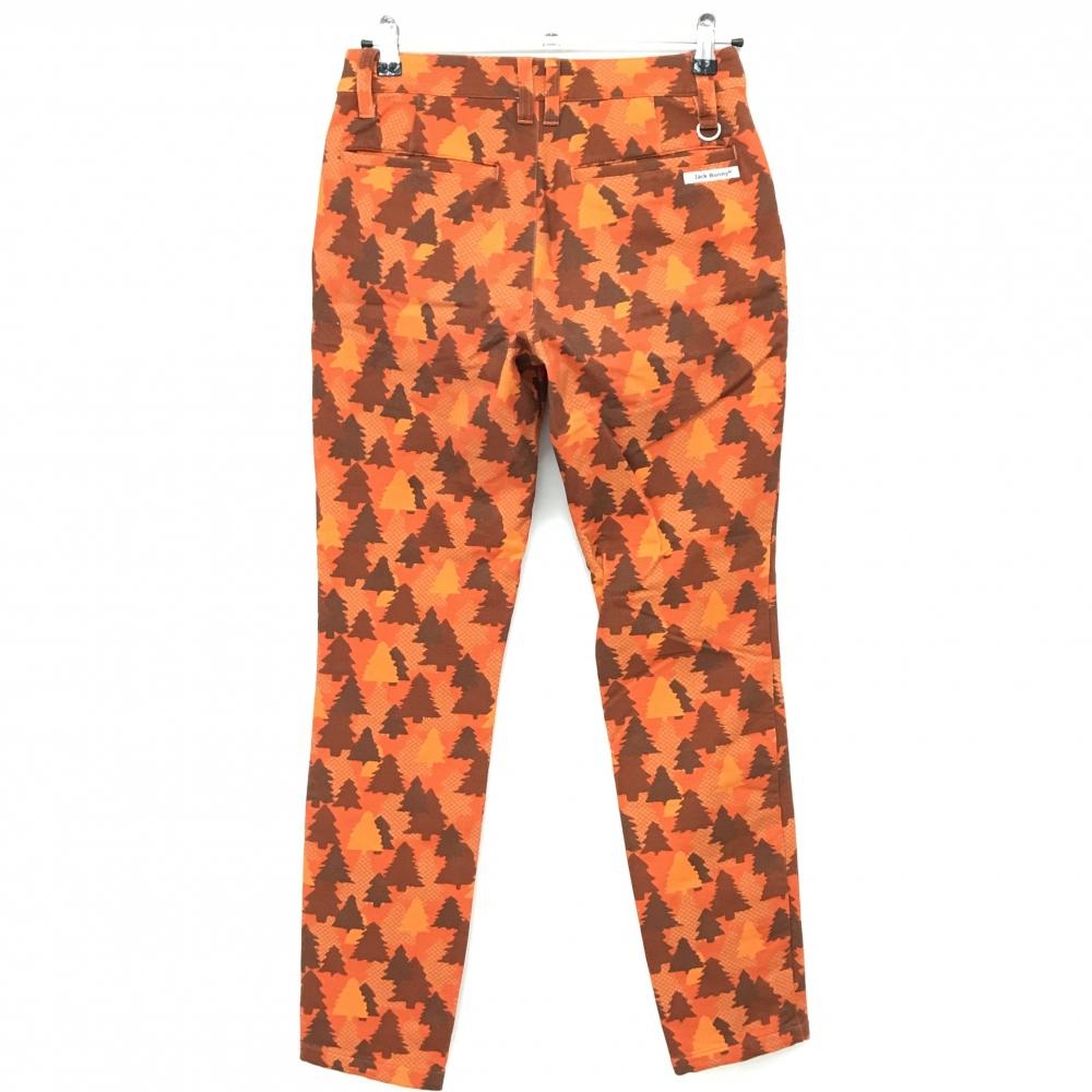 【超美品】ジャックバニー パンツ オレンジ×ブラウン ツリー総柄 ロゴ刺しゅう レディース 2(L) ゴルフウェア Jack Bunny