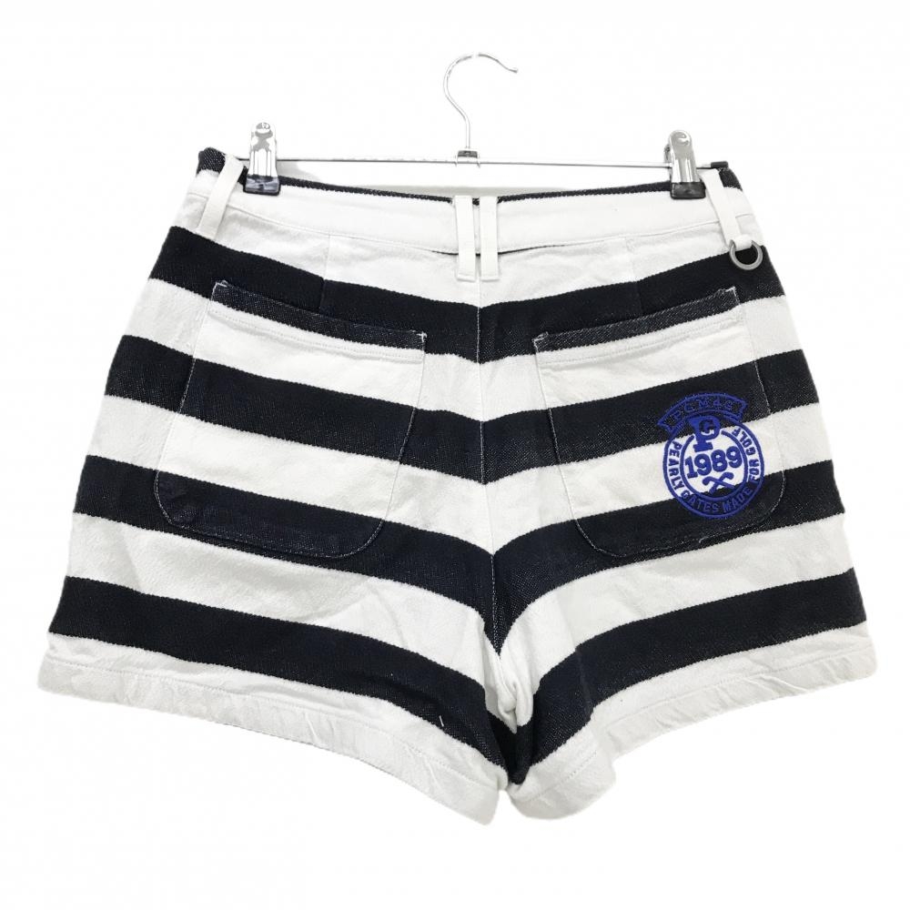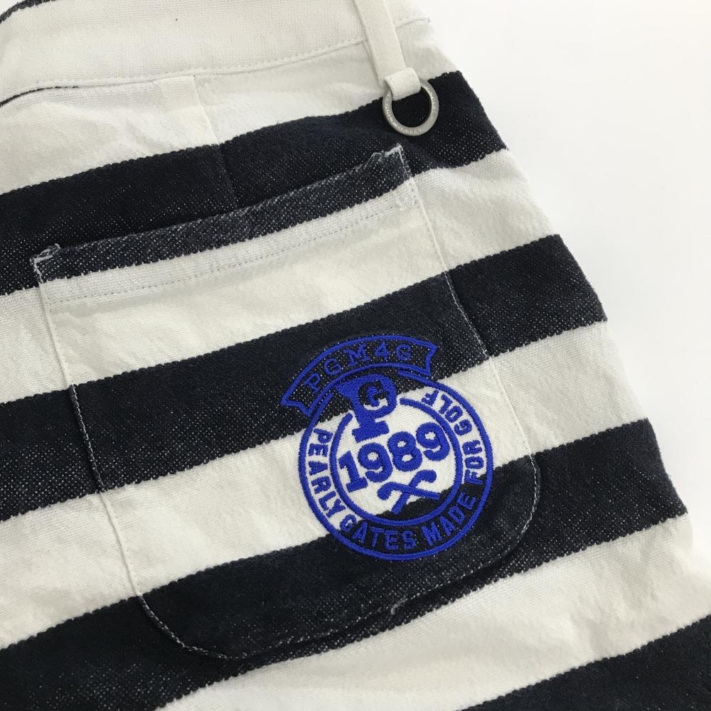 【美品】パーリーゲイツ ショートパンツ 白×ネイビー ボーダー 30周年 内側ニコちゃん レディース 0(S) ゴルフウェア PEARLY GATES