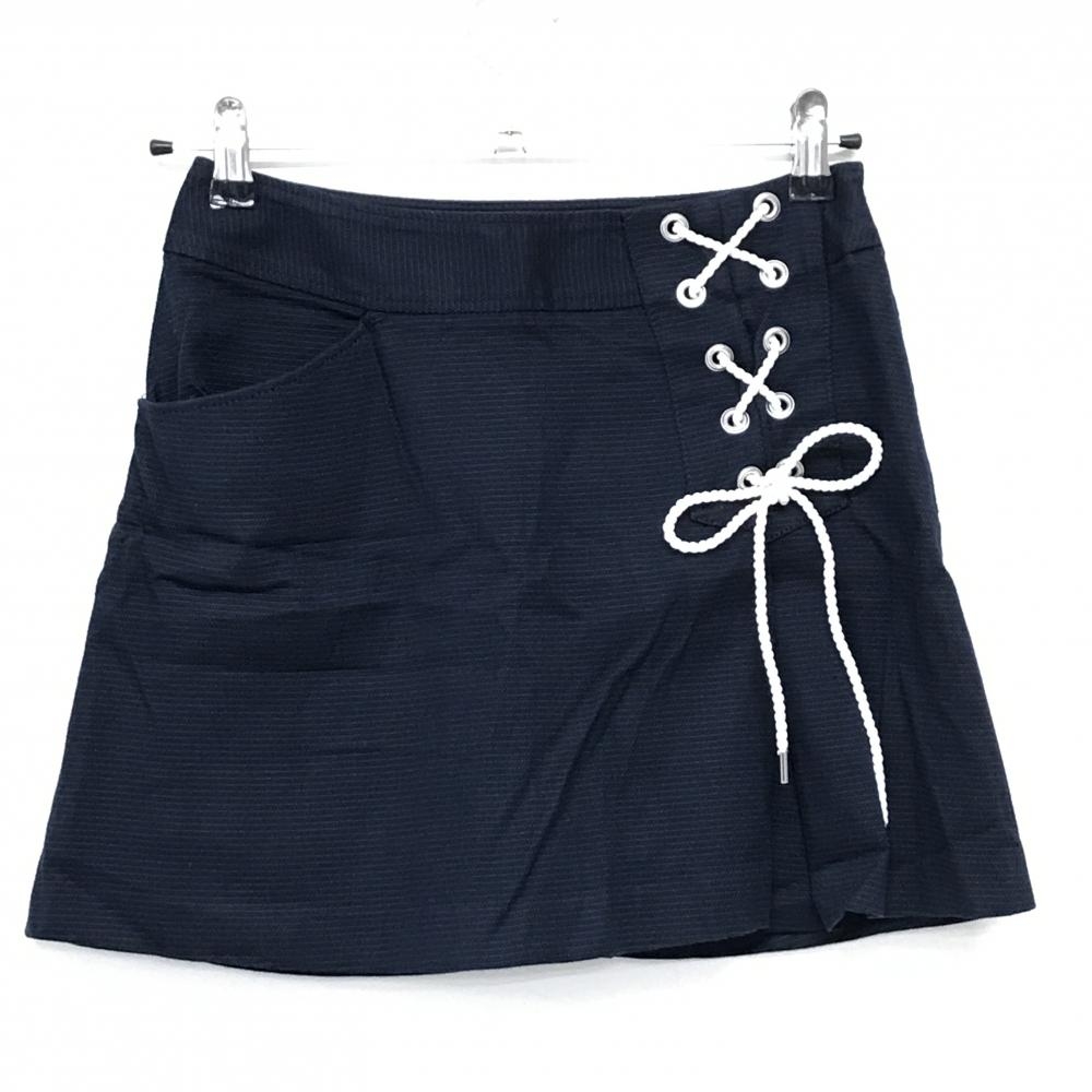 【美品】ジュンアンドロペ スカート ネイビー 地模様 レースアップ インナーパンツ付 レディース M ゴルフウェア JUN&ROPE