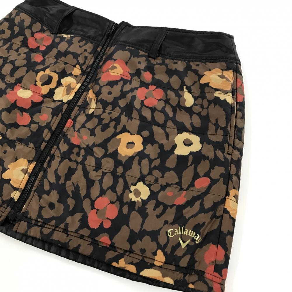 【超美品】キャロウェイ 中綿リバーシブルスカート ブラウン×黒×オレンジ 総柄 フロントジップ レディース L ゴルフウェア Callaway
