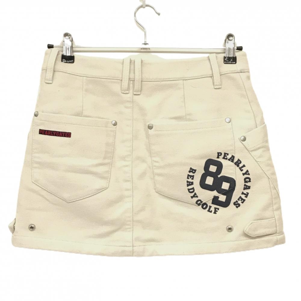 【美品】パーリーゲイツ スカート アイボリー×ネイビー 後ろロゴプリント 裏起毛 レディース 0(S) ゴルフウェア PEARLY GATES