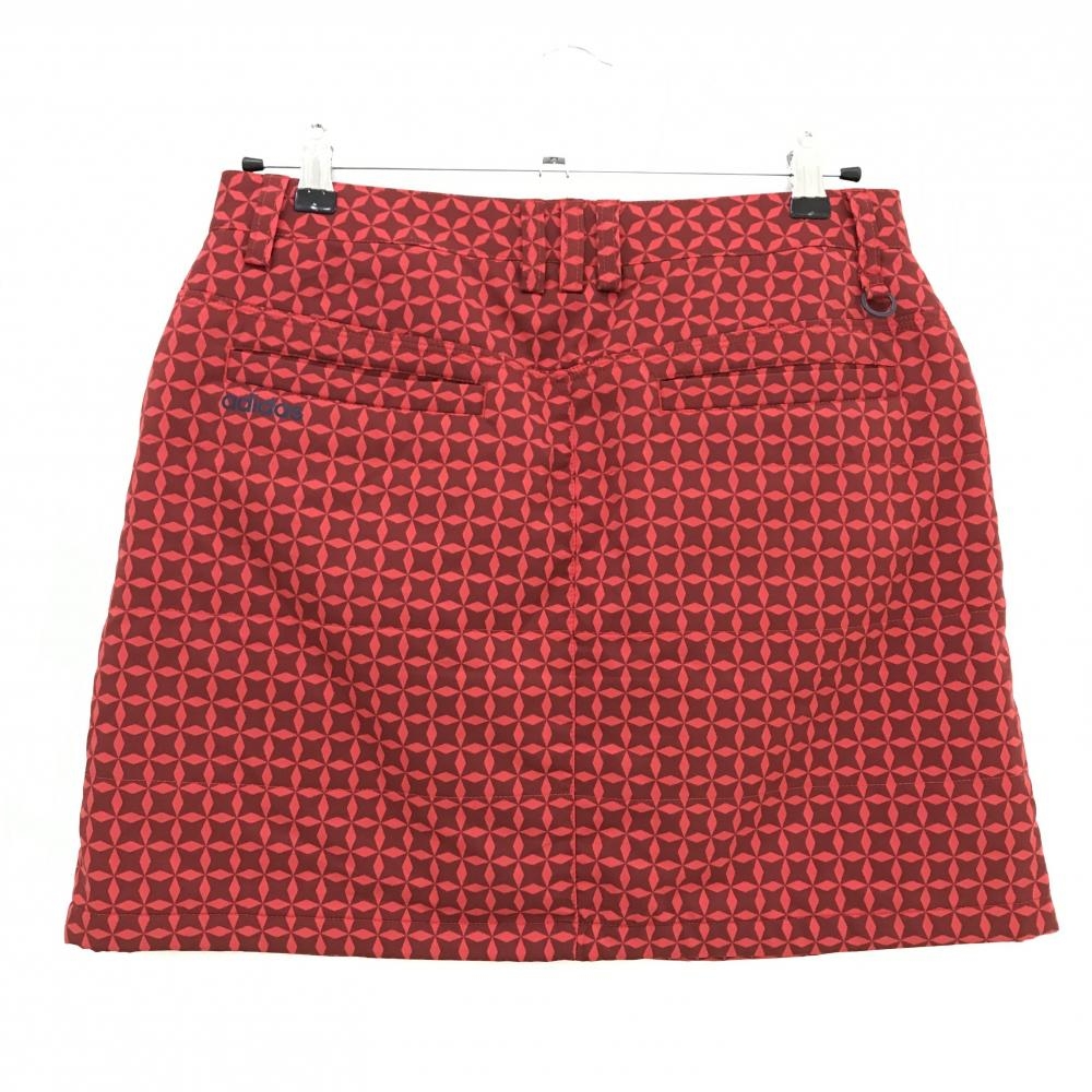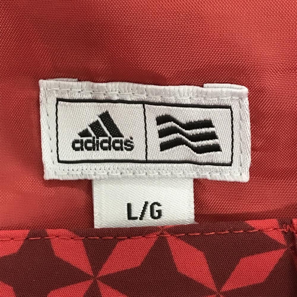 【美品】アディダス 中綿スカート レッド×ブラウン 総柄 裾色褪せ少 レディース L/G ゴルフウェア adidas