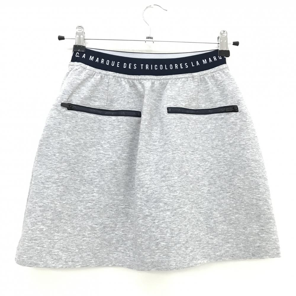 【美品】ルコックゴルフ スカート ライトグレー×ネイビー ウエストロゴ レディース M ゴルフウェア le coq sportif