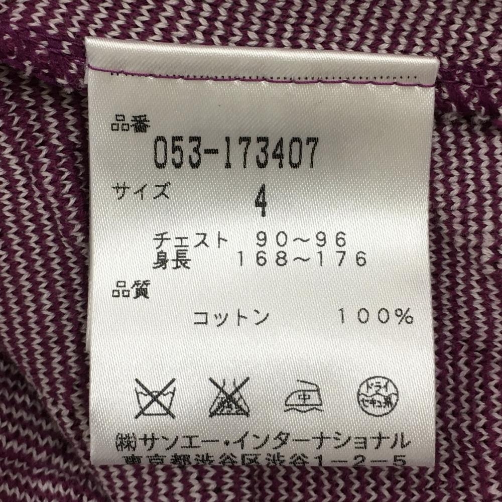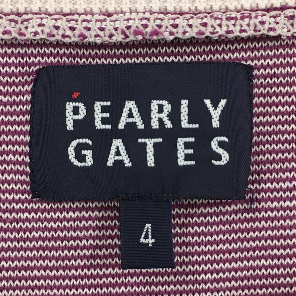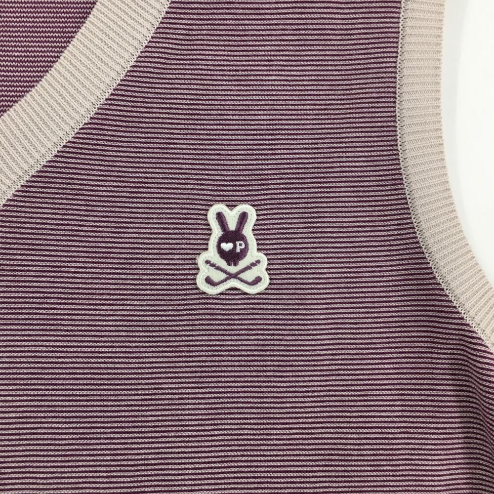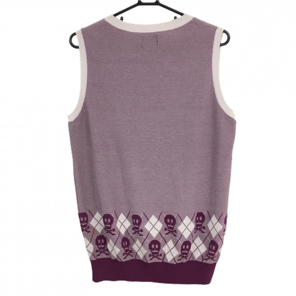 【美品】パーリーゲイツ ニットベスト パープル×ライトベージュ スカル 細ボーダー コットン混 メンズ 4(M) ゴルフウェア PEARLY GATES