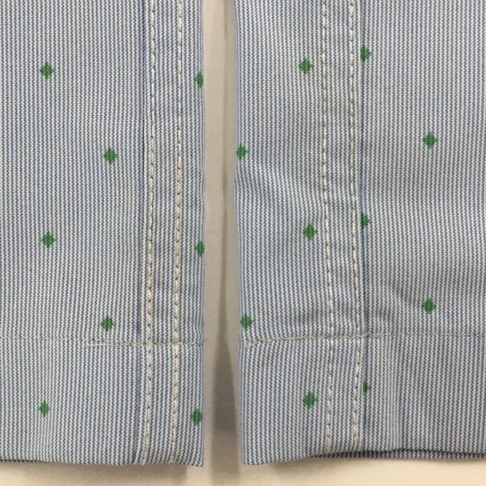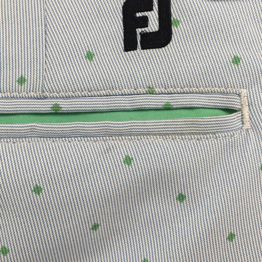 フットジョイ パンツ ライトブルー×グリーン 地模様 ドット調 ロゴ刺しゅう ストレッチ 薄手 メンズ W33 ゴルフウェア FootJoy