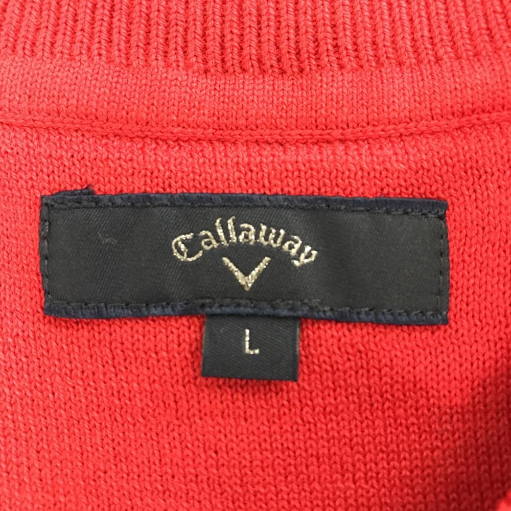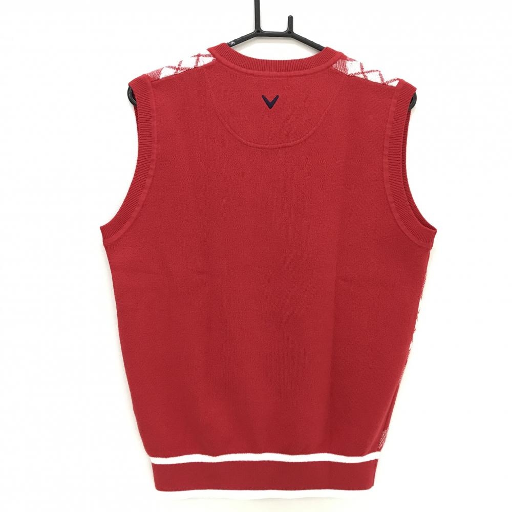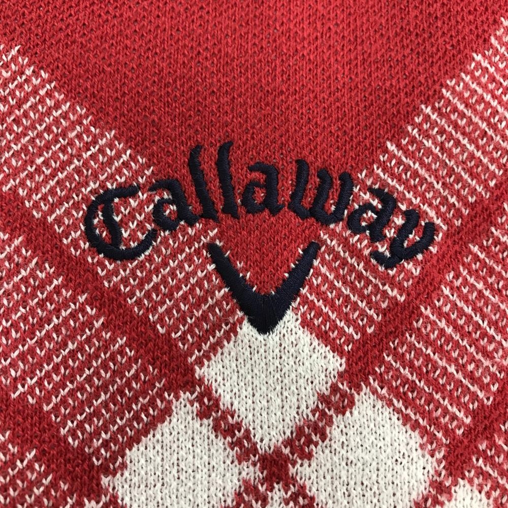 【美品】キャロウェイ ニットベスト レッド×白 前チェック ロゴネイビー コットン混 メンズ L ゴルフウェア Callaway