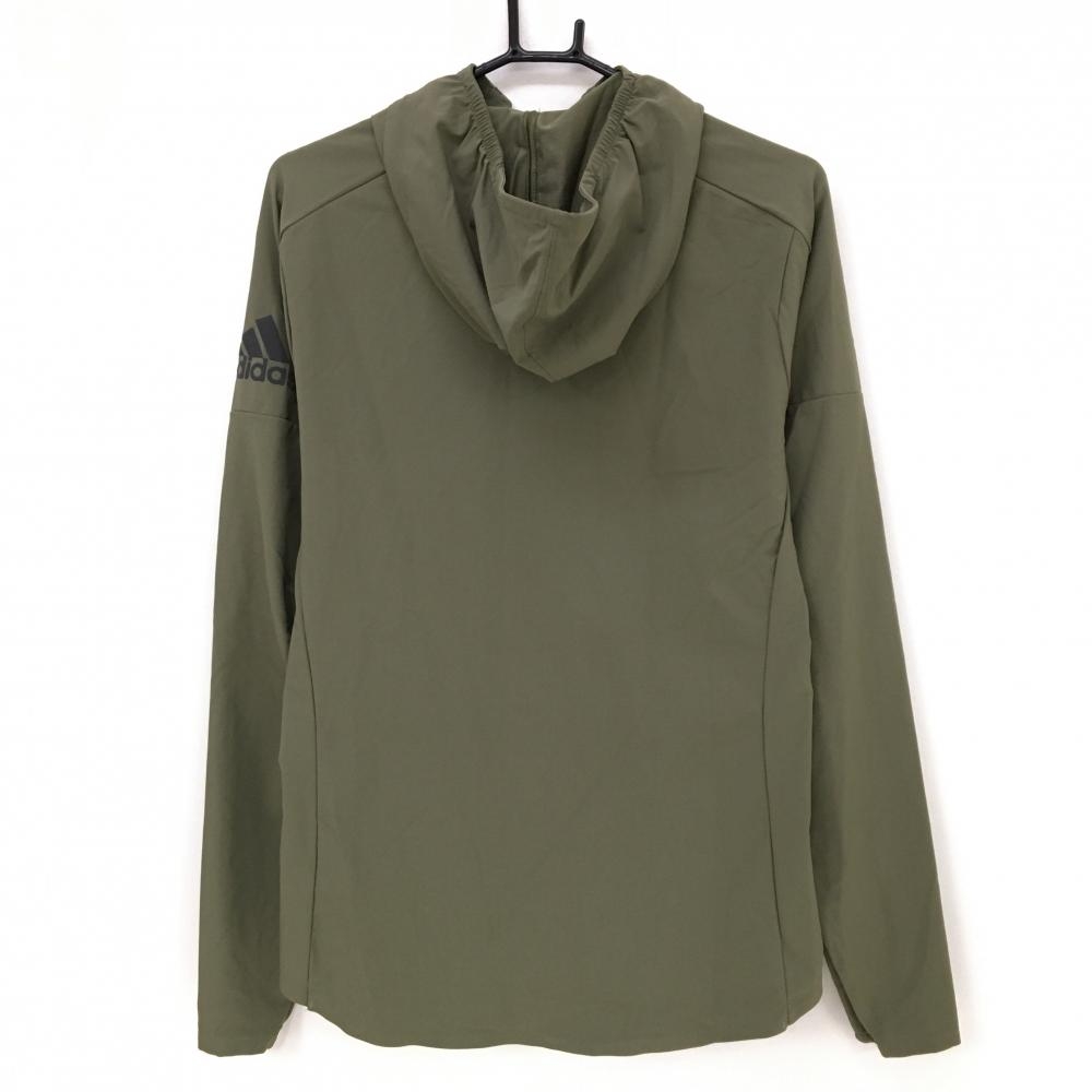 【超美品】アディダス ジップパーカー カーキ 袖ロゴ フード後ドローコード ジャケット メンズ S ゴルフウェア adidas