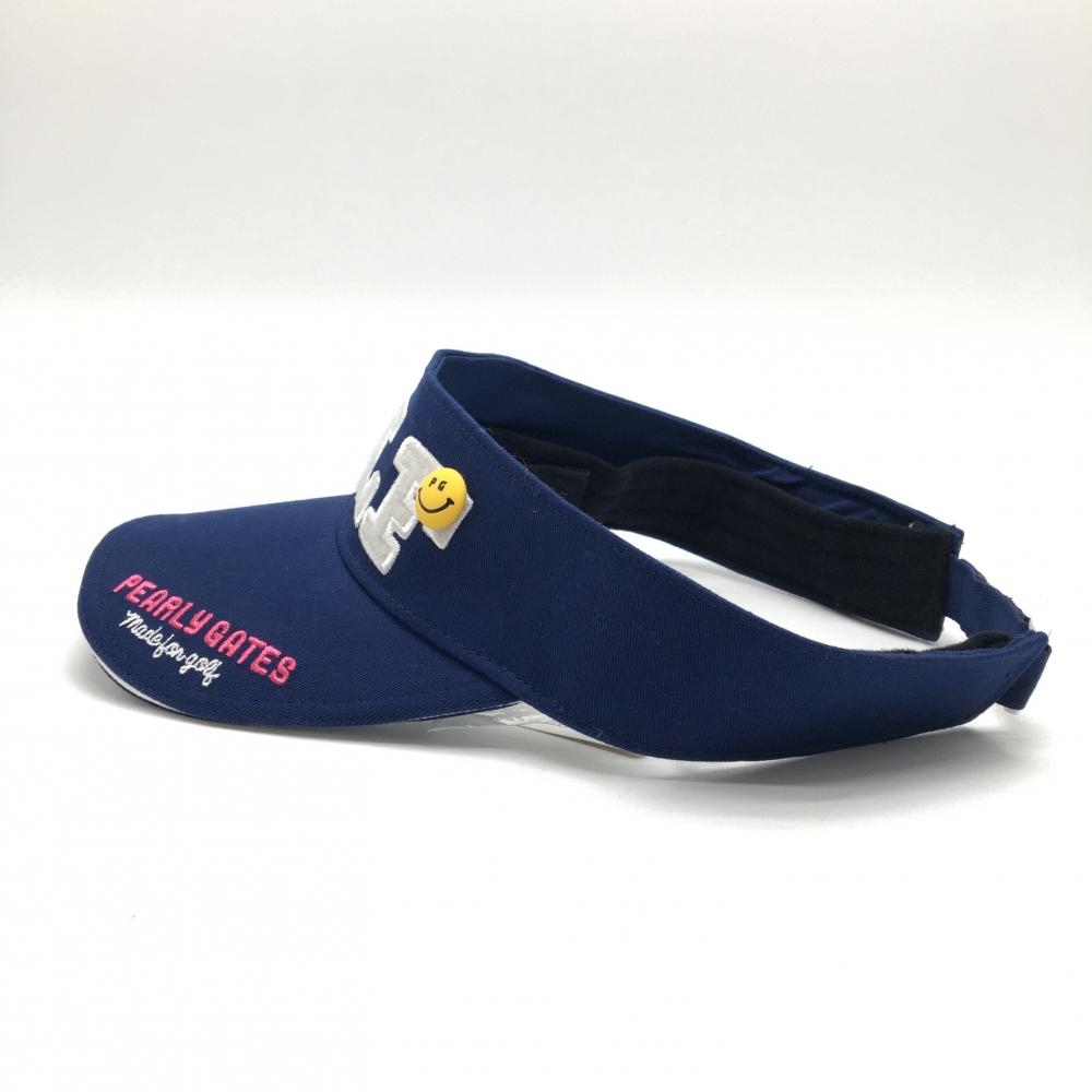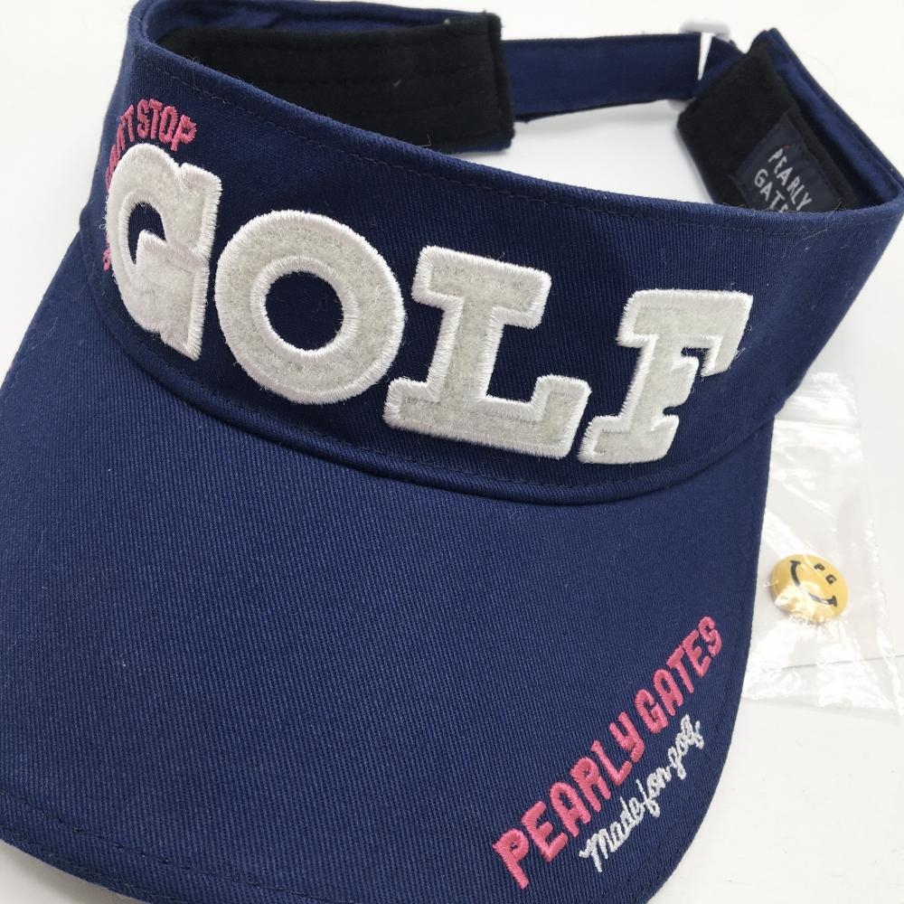【新品】パーリーゲイツ サンバイザー ネイビー×白 ニコちゃん着脱可 汗取りパッド FR ゴルフウェア PEARLY GATES