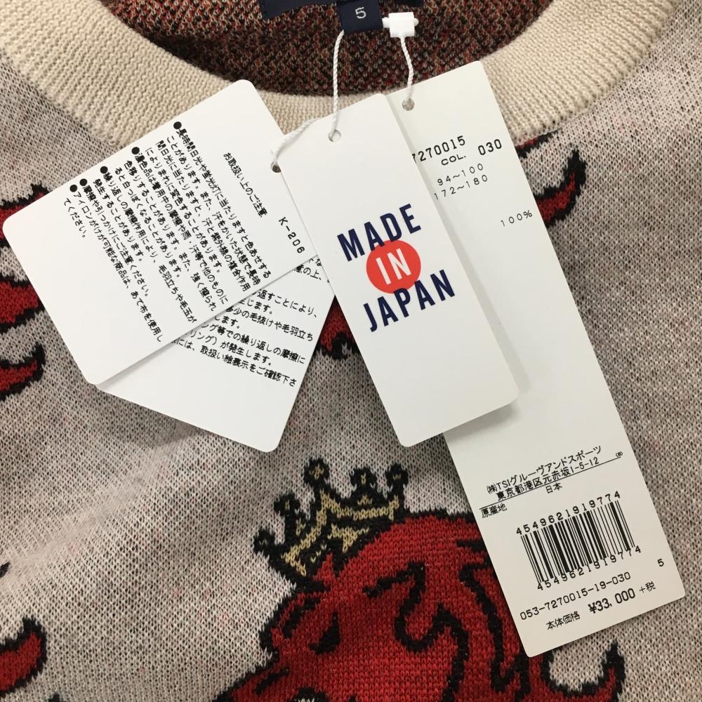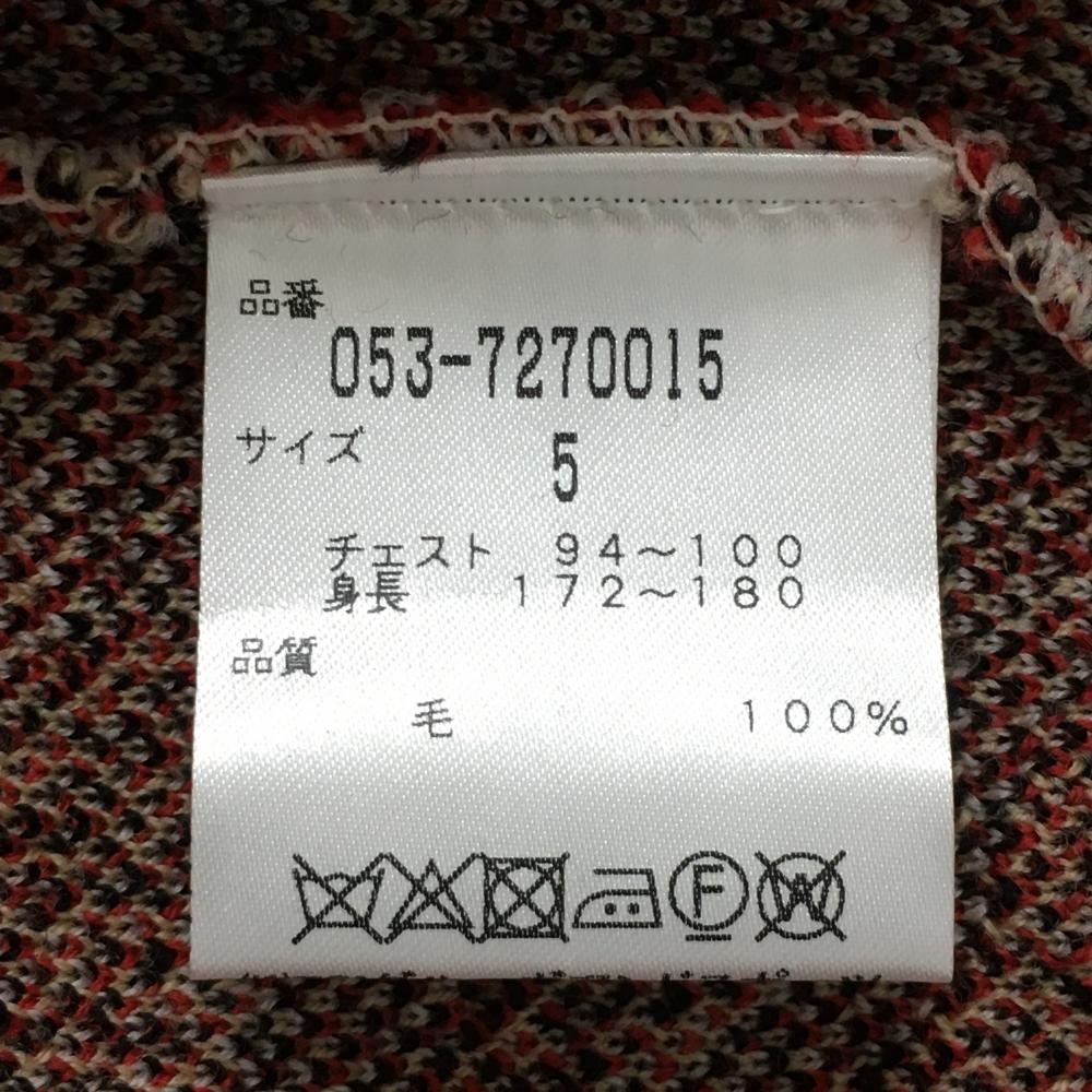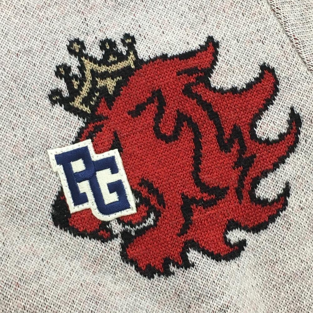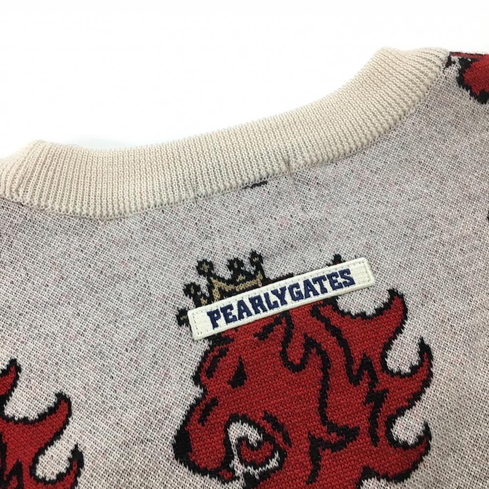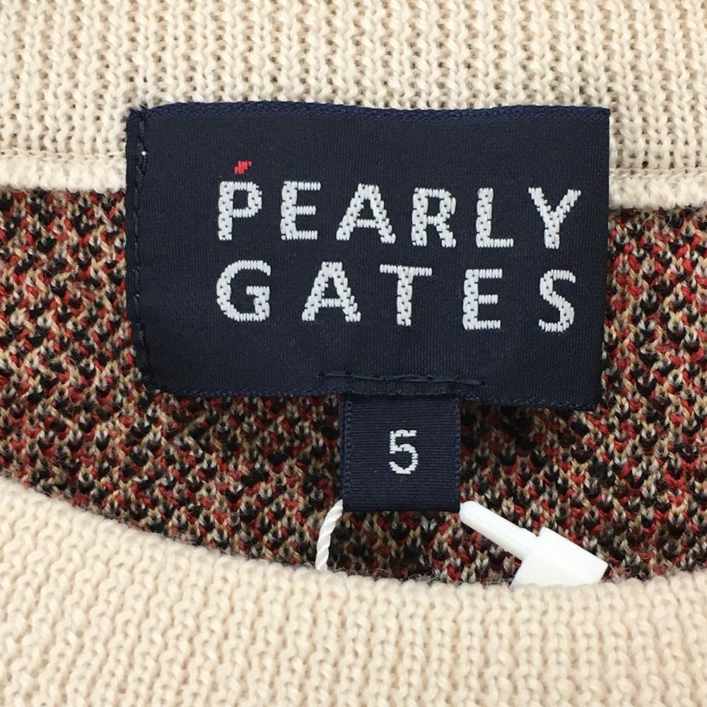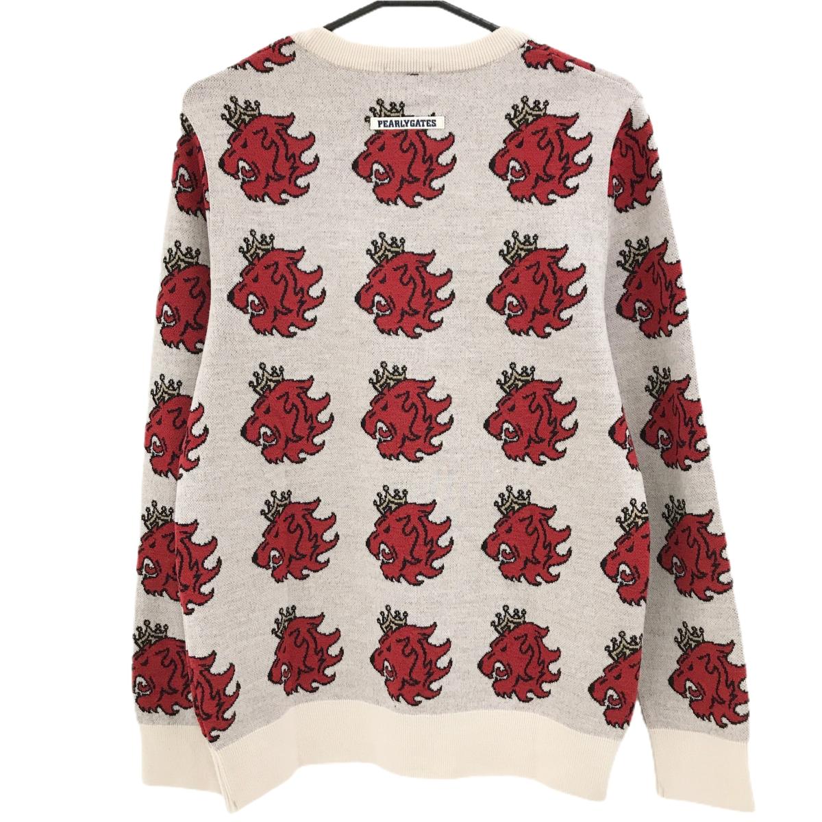 【新品】パーリーゲイツ セーター ベージュ系×レッド 総柄 ウール100% ニット メンズ 5(M) ゴルフウェア PEARLY GATES