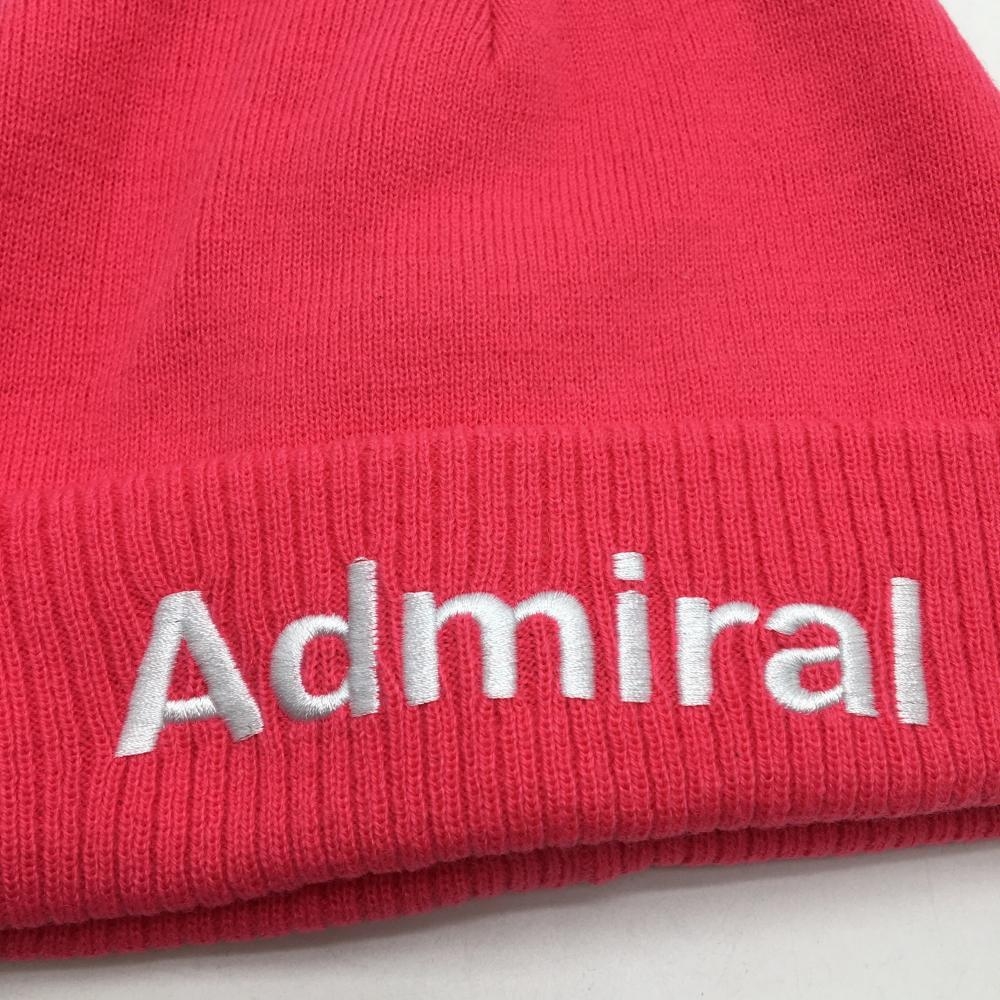 【新品】アドミラル ニット帽 ピンク×白 ロゴ刺しゅう フリー ゴルフウェア Admiral