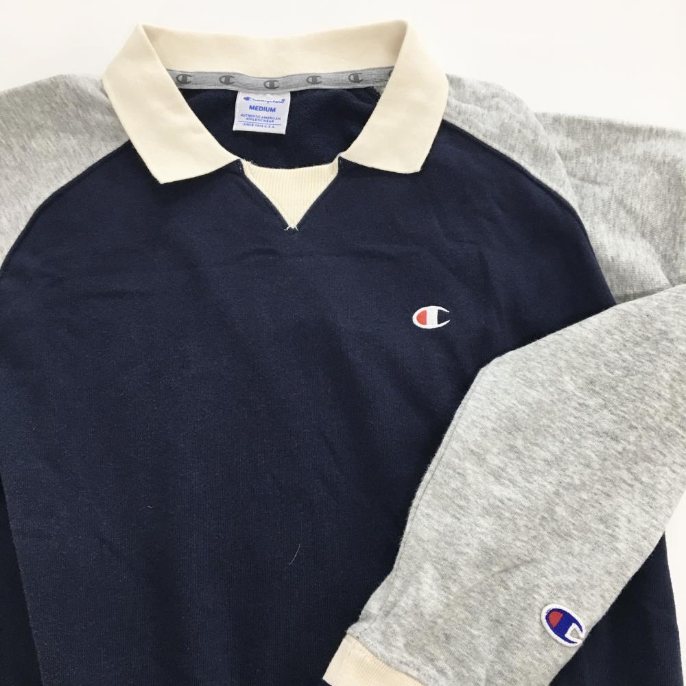 チャンピオン 襟付きワンピース ネイビー×杢グレー ウエスト調整紐 胸ロゴ レディース MEDIUM ゴルフウェア Champion