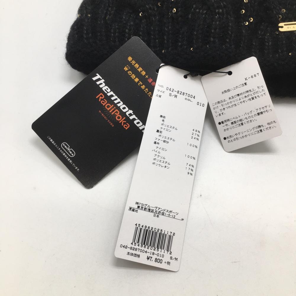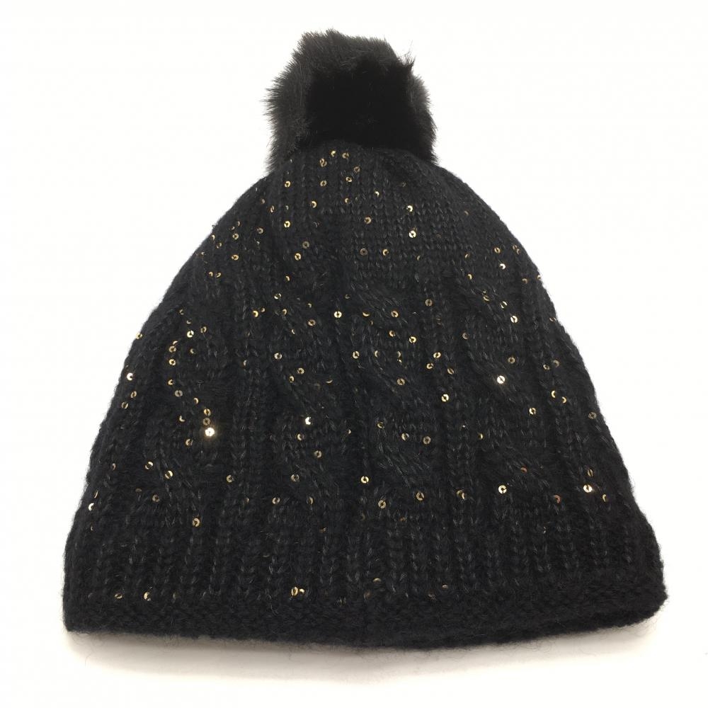 【新品】セントアンドリュース ニット帽 黒×ゴールド スパンコール レディース S/M ゴルフウェア St ANDREWS
