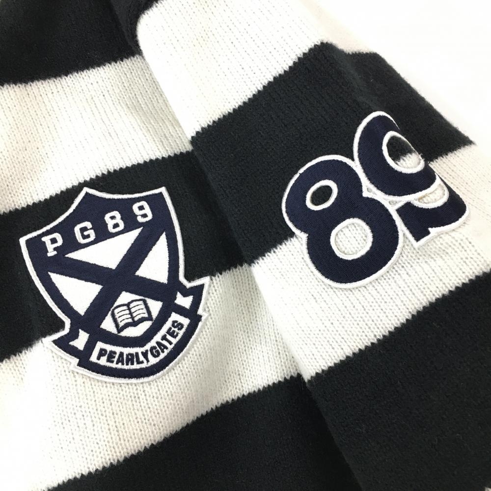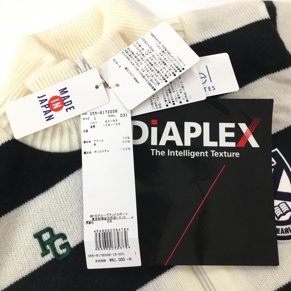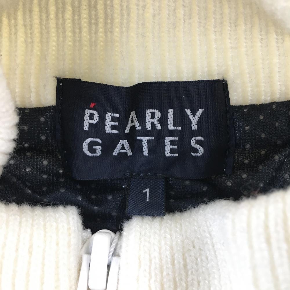【新品】パーリーゲイツ ニットジャケット 白×ネイビー ボーダー 裏地付き ウール混 レディース 1(M) ゴルフウェア PEARLY GATES