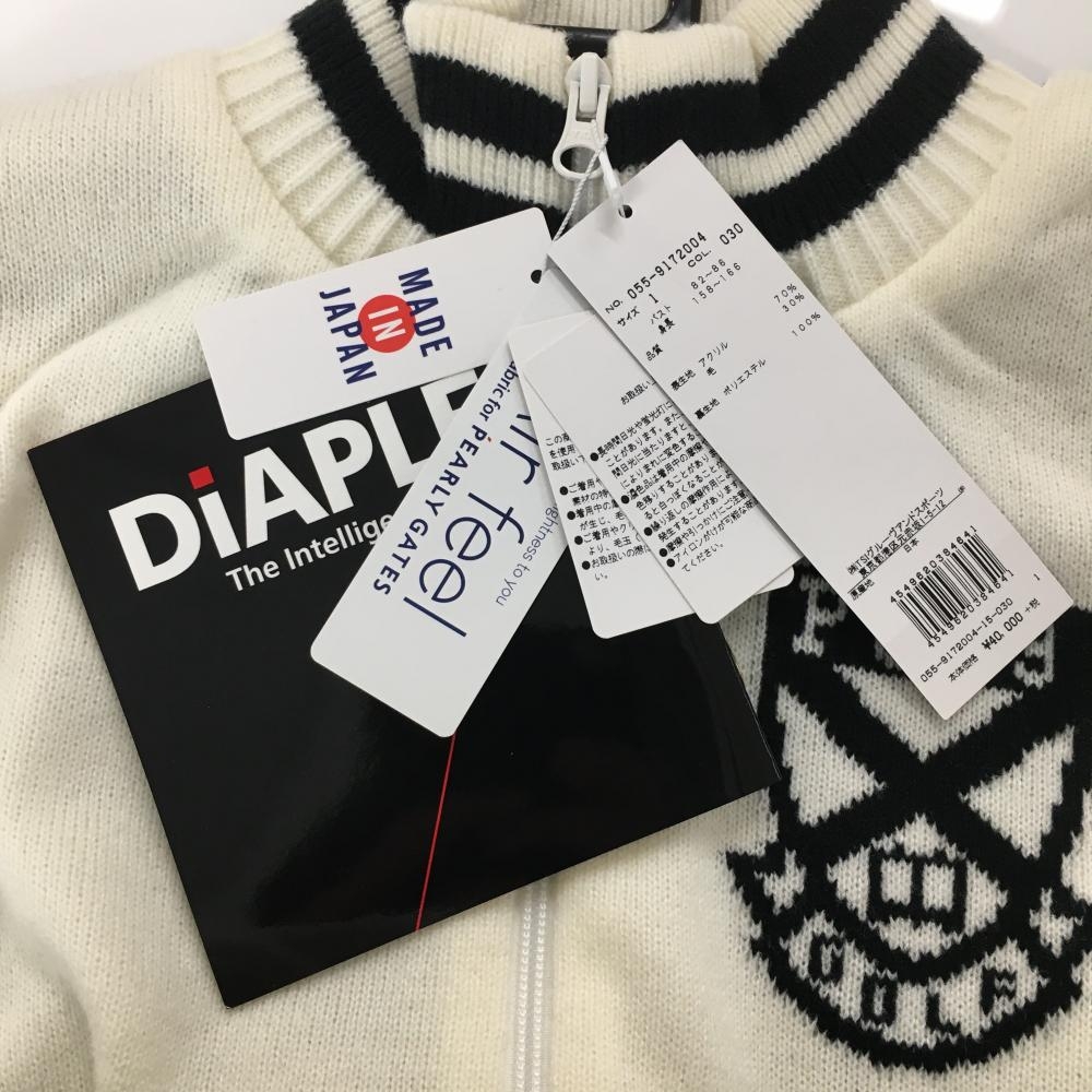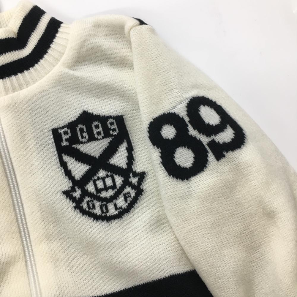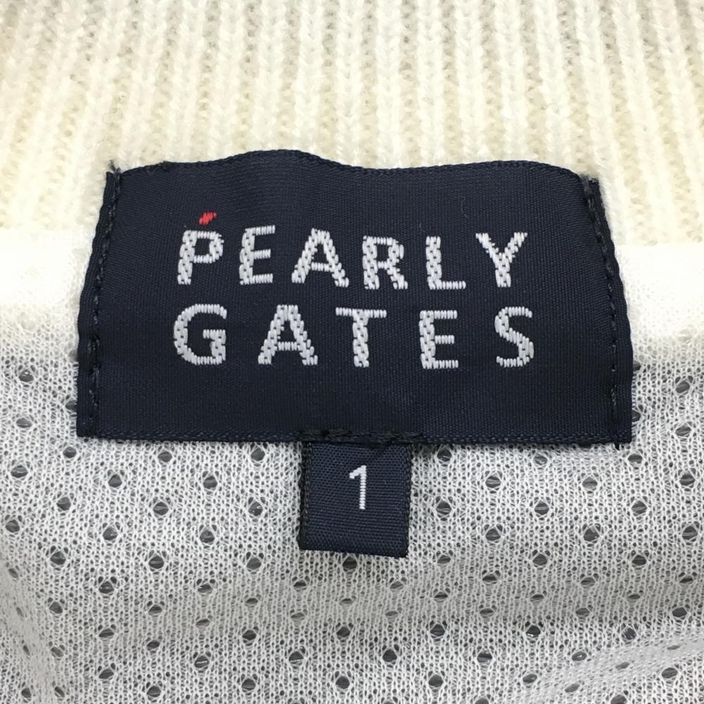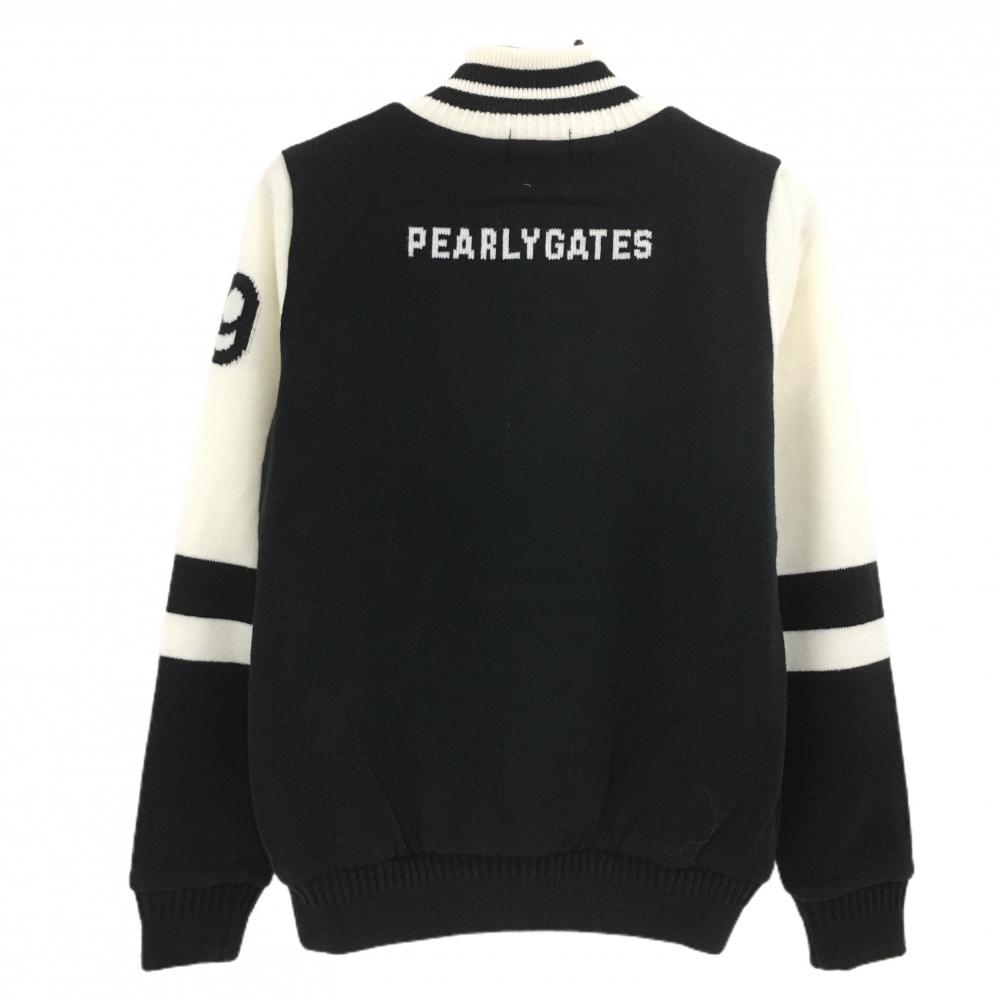【新品】パーリーゲイツ ニットジャケット 白×黒 ネックライン 裏地付き ウール混 胸ロゴ レディース 1(M) ゴルフウェア PEARLY GATES