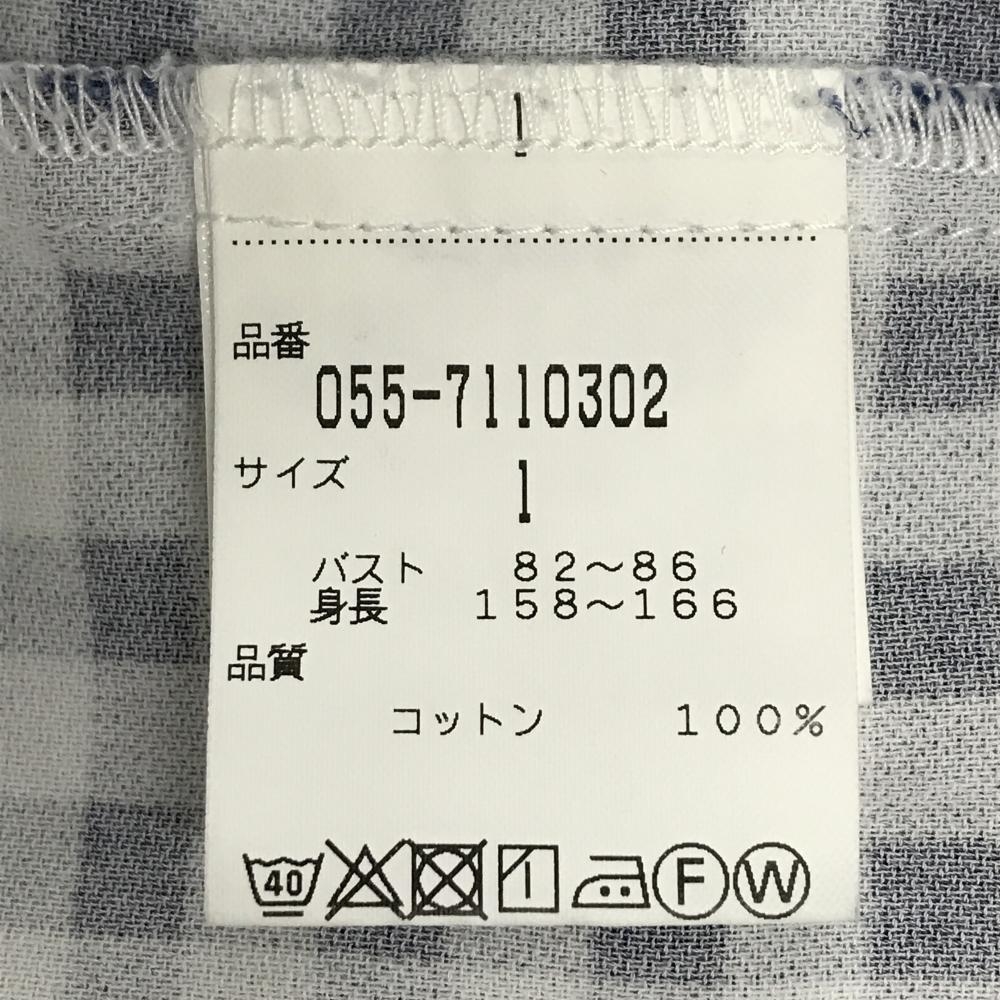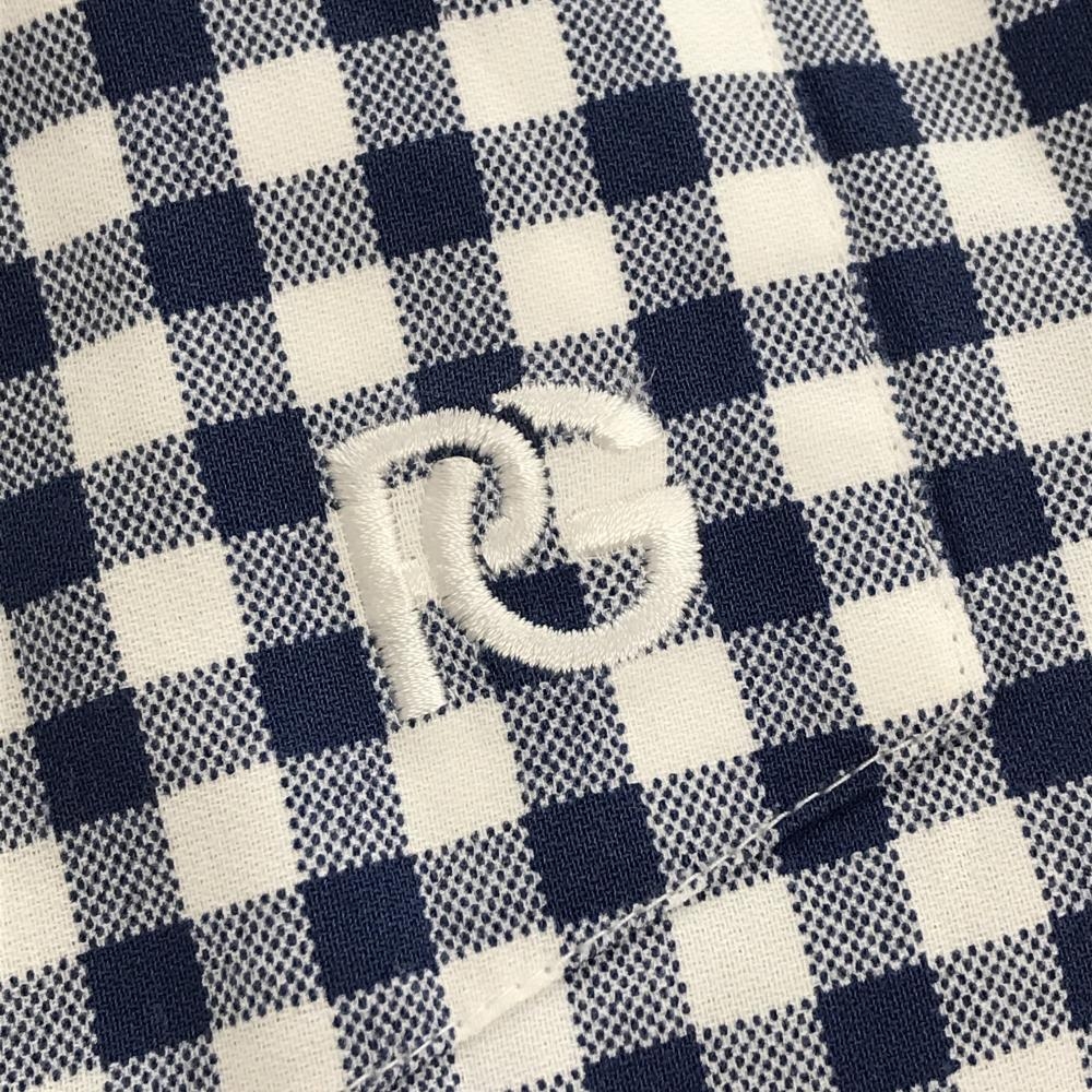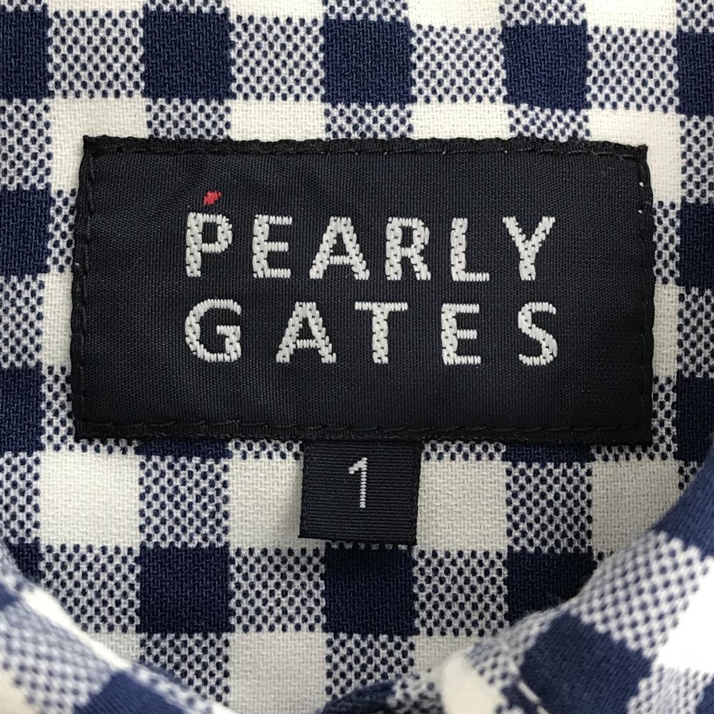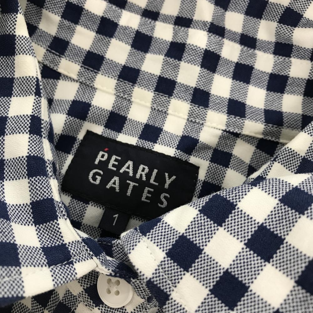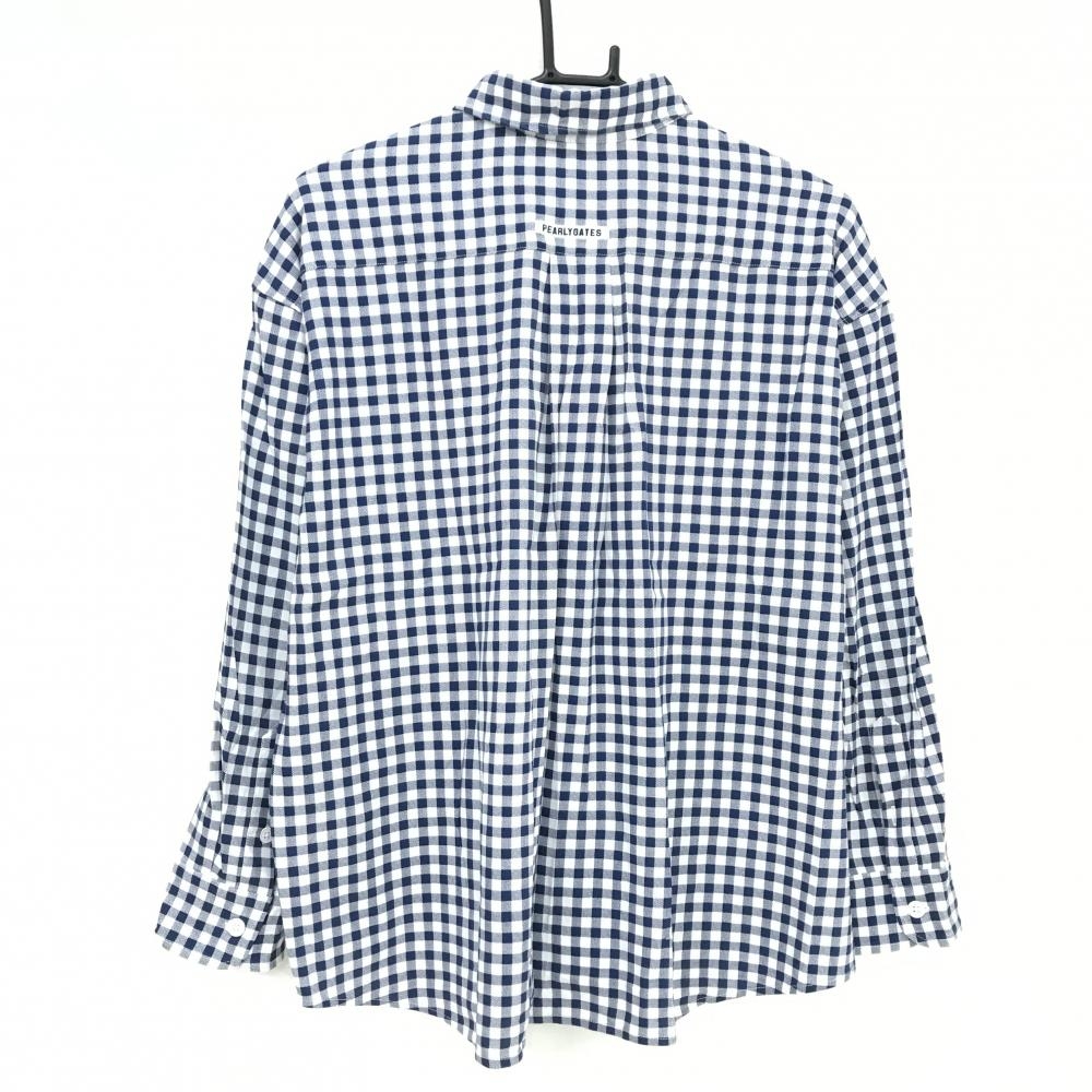 パーリーゲイツ 長袖シャツ 白×ネイビー ギンガムチェック コットン100% レディース 1(M) ゴルフウェア PEARLY GATES