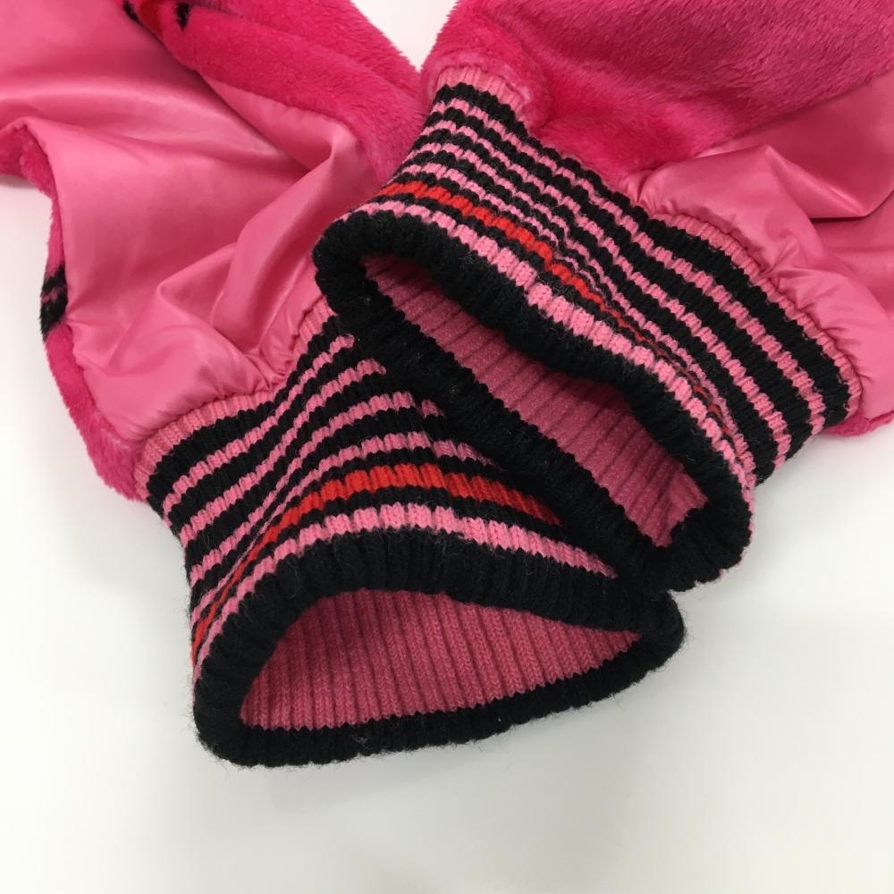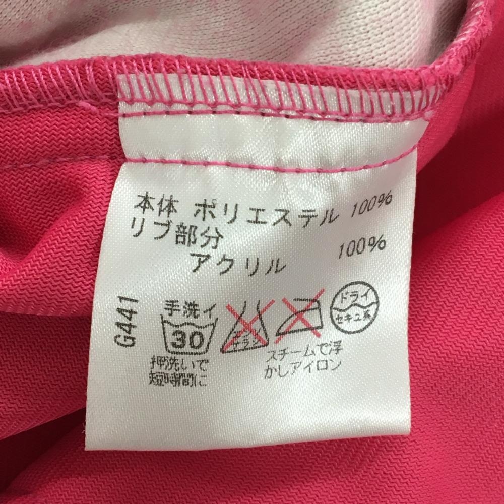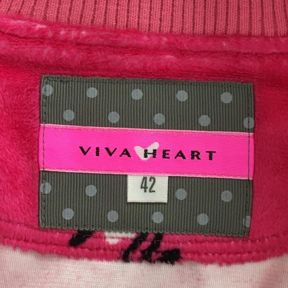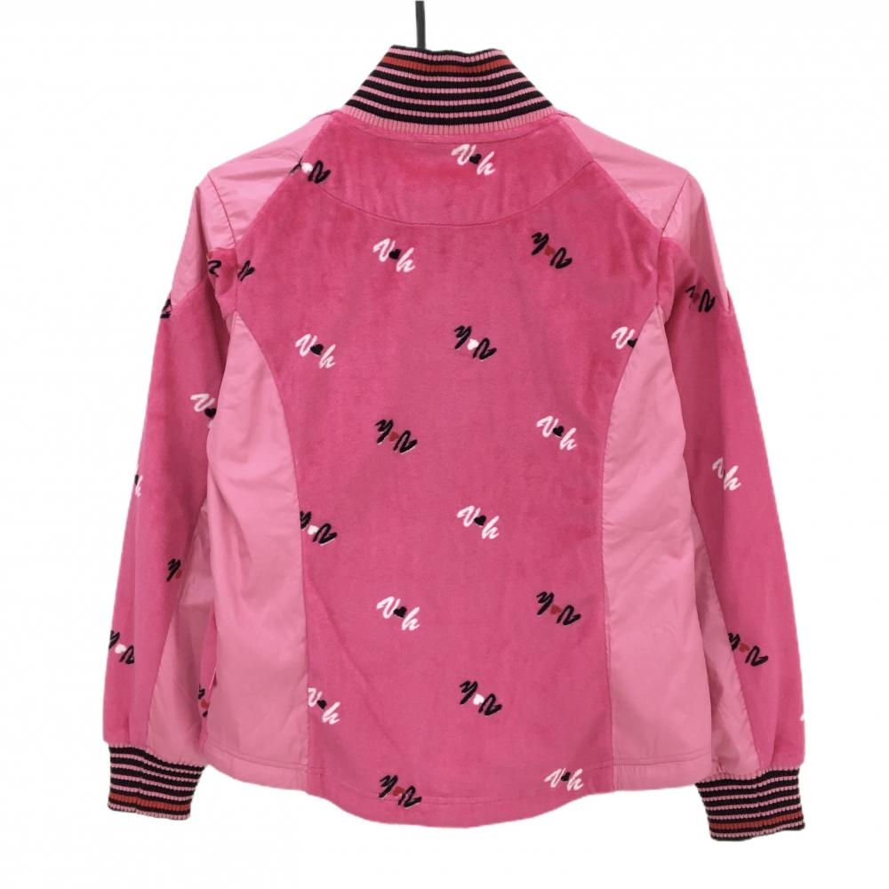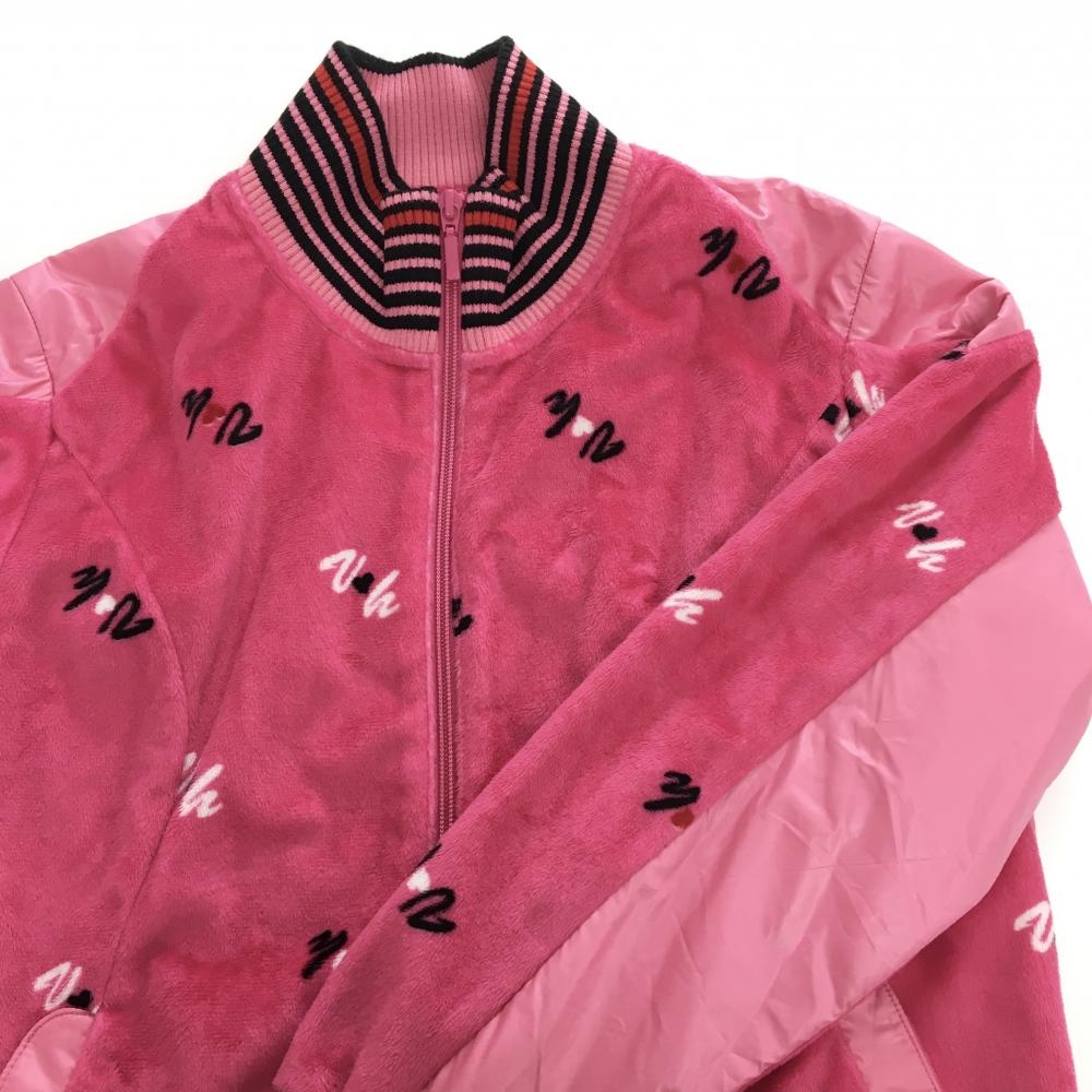 【美品】ビバハート ジャケット ピンク×黒 一部起毛 総柄 ネック・袖口ボーダー ダブルジップ レディース 42(L) ゴルフウェア VIVA HEART
