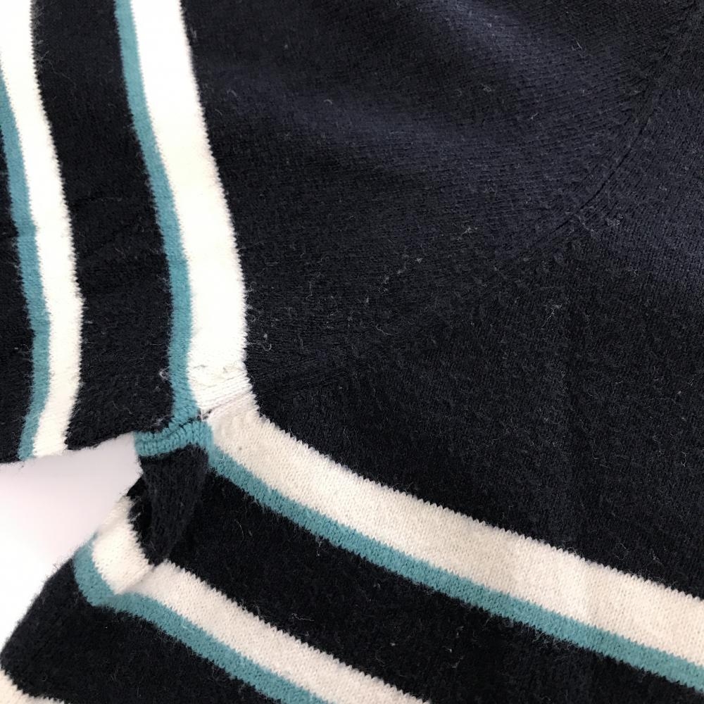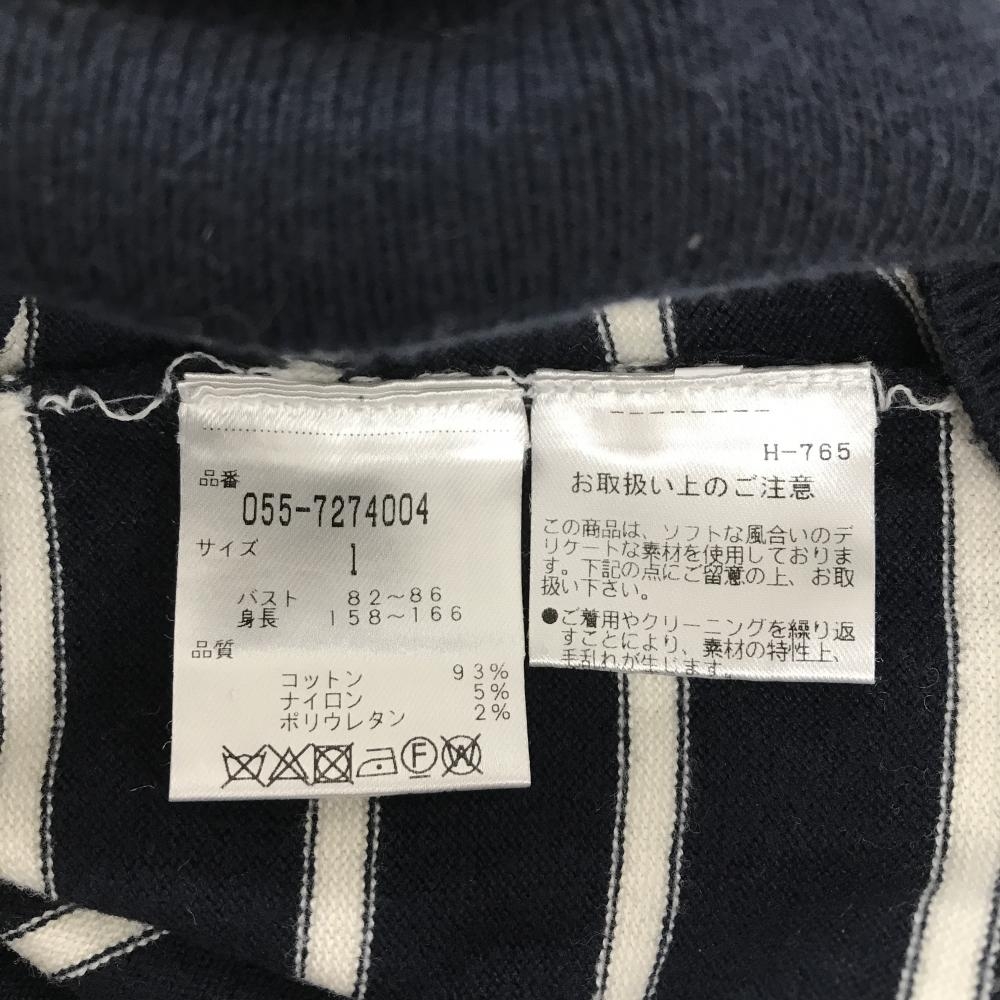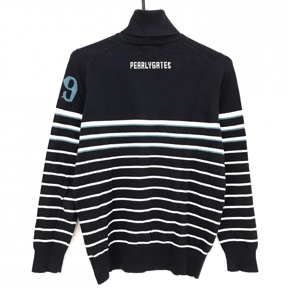 パーリーゲイツ タートルネックセーター ネイビー×白 ボーダー 胸ロゴ ニット レディース 1(M) ゴルフウェア PEARLY GATES