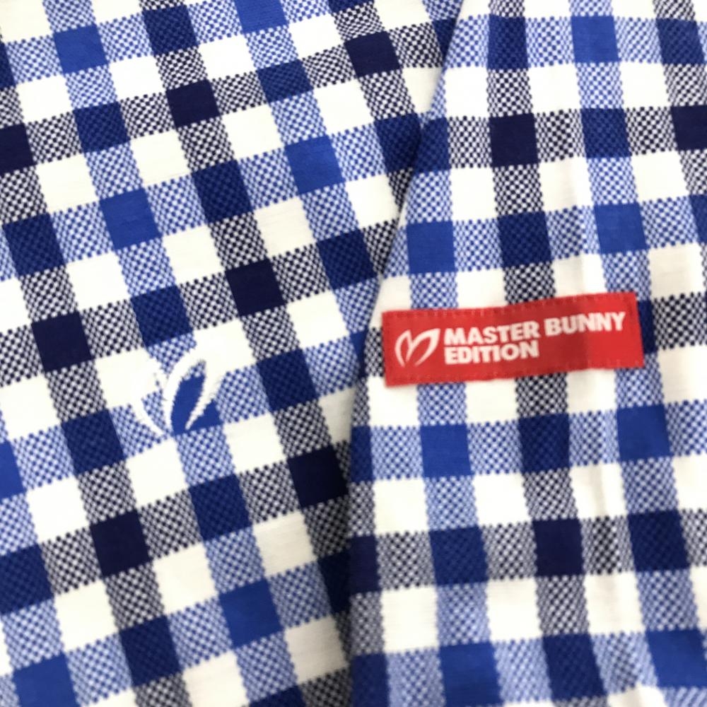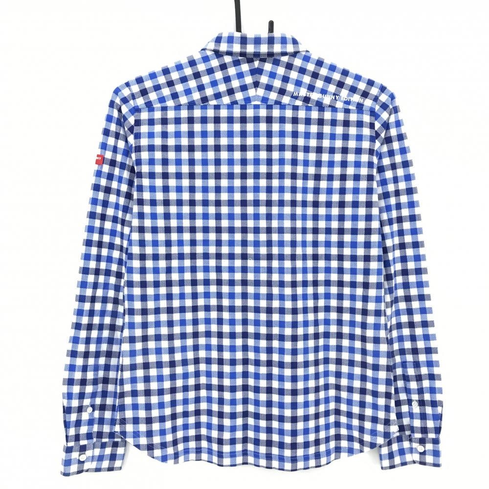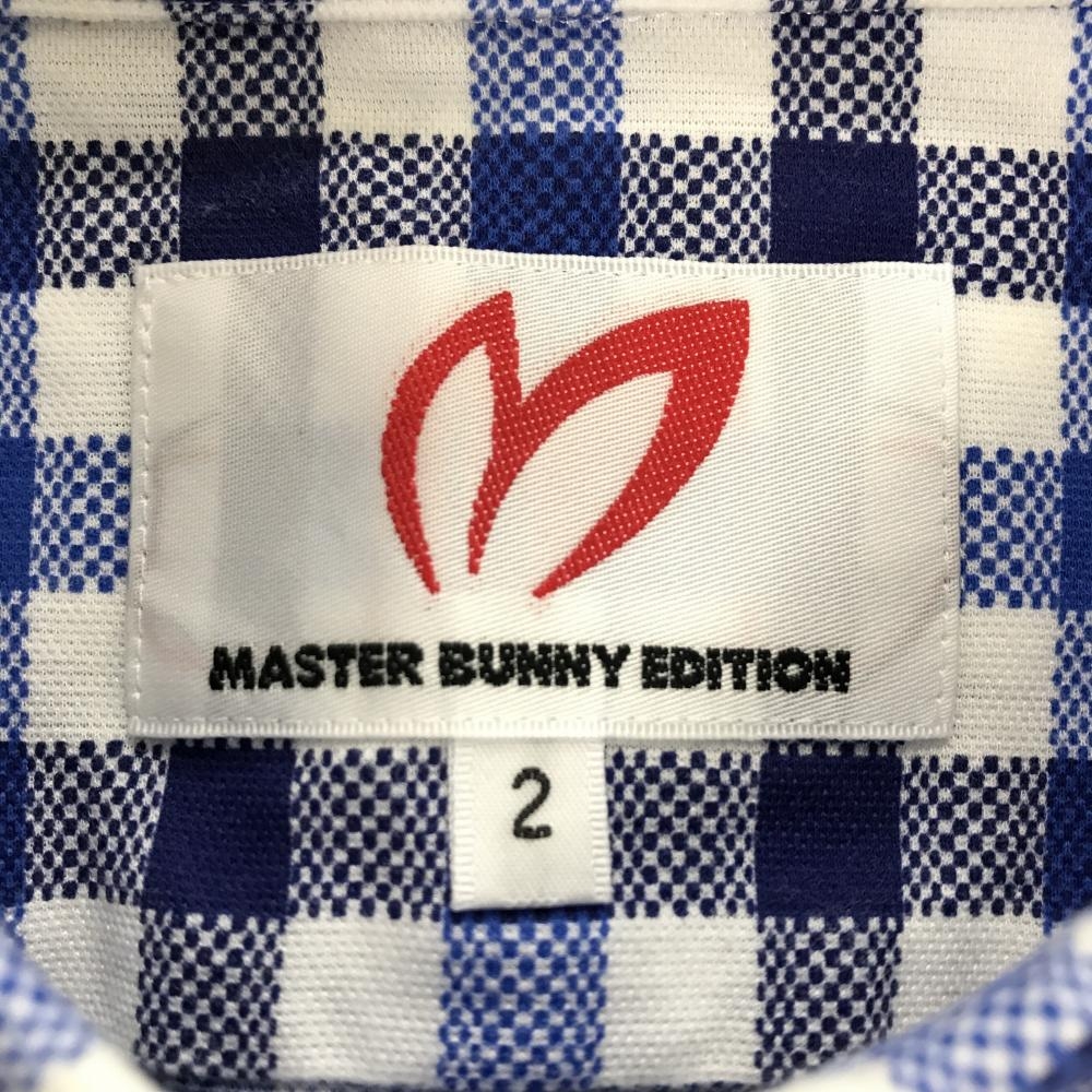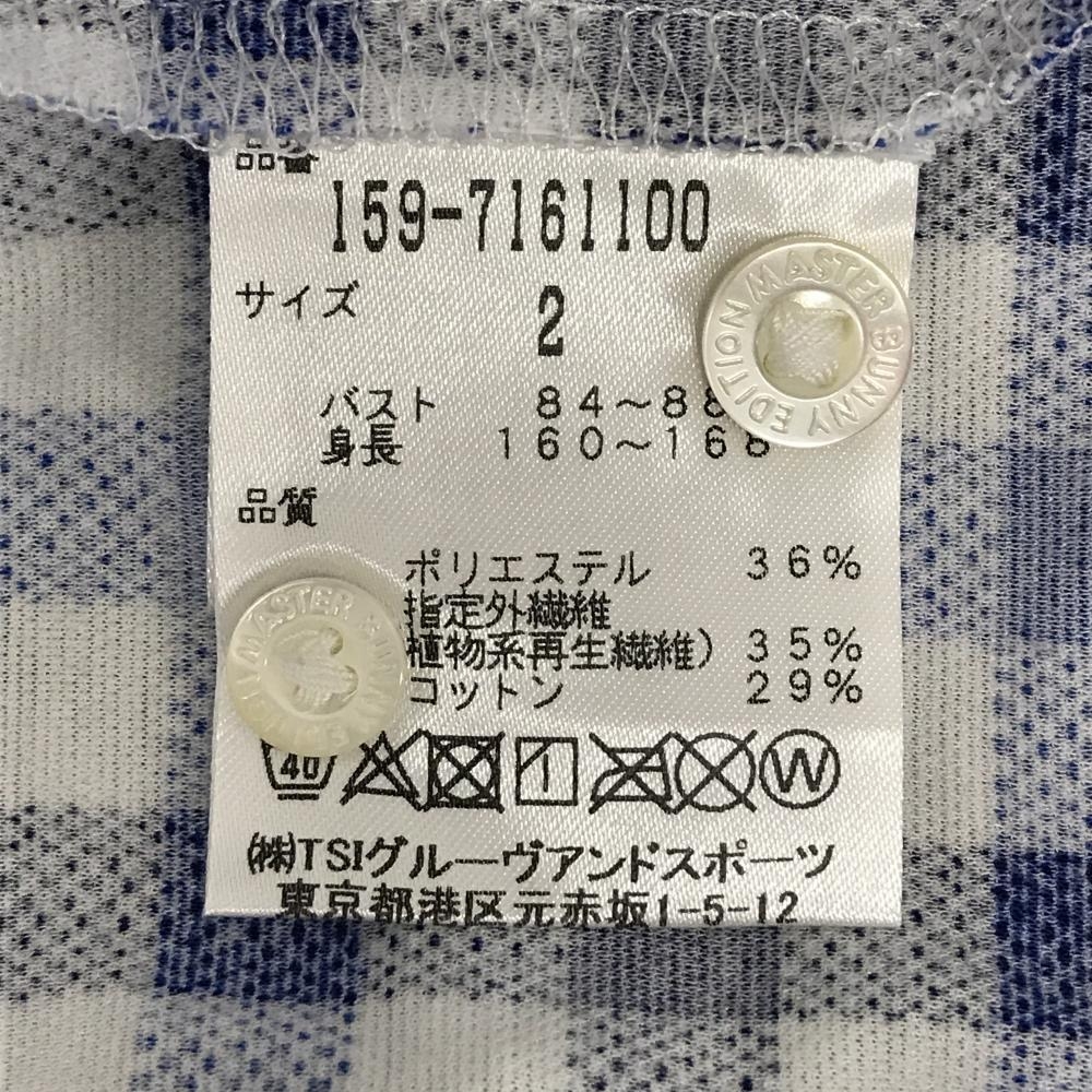 【美品】マスターバニー 長袖シャツ 白×ネイビー×ブルー チェック 胸ロゴ レディース 2(L) ゴルフウェア MASTER BUNNY EDITION