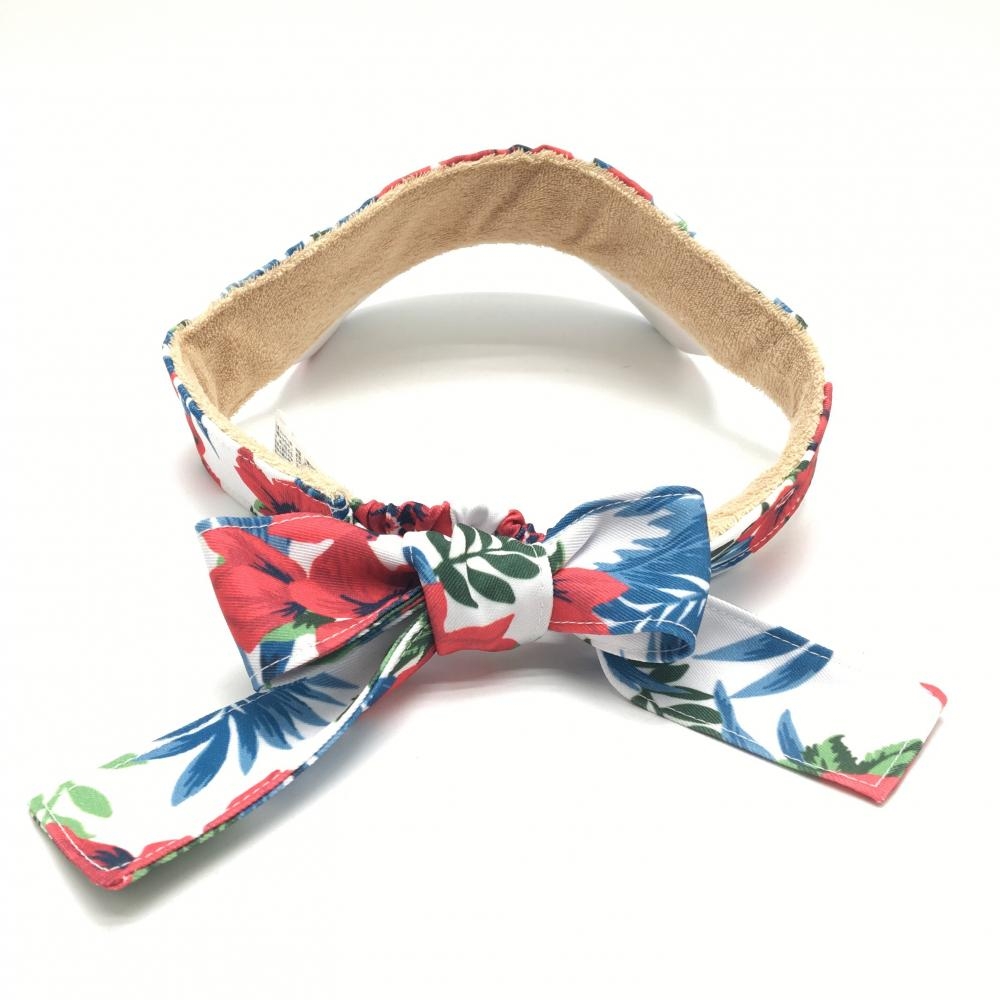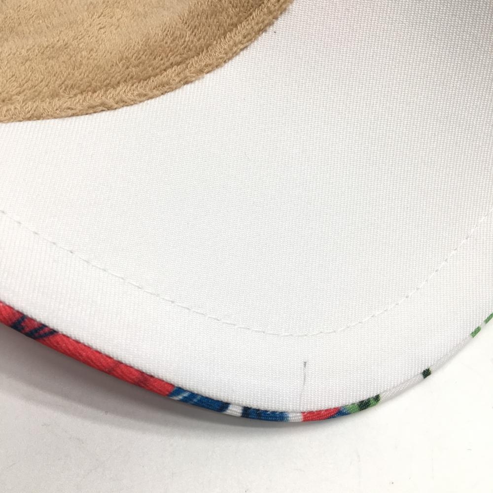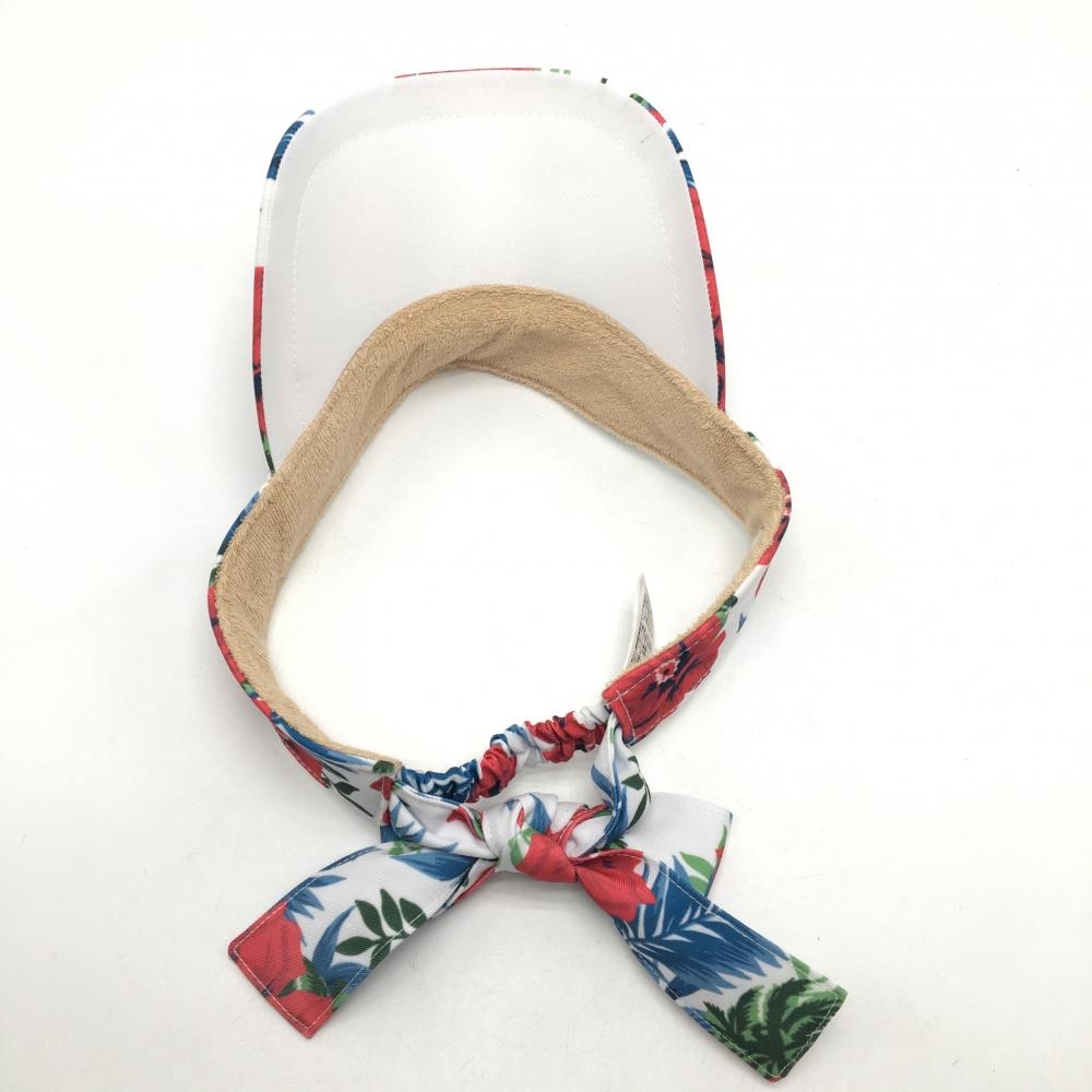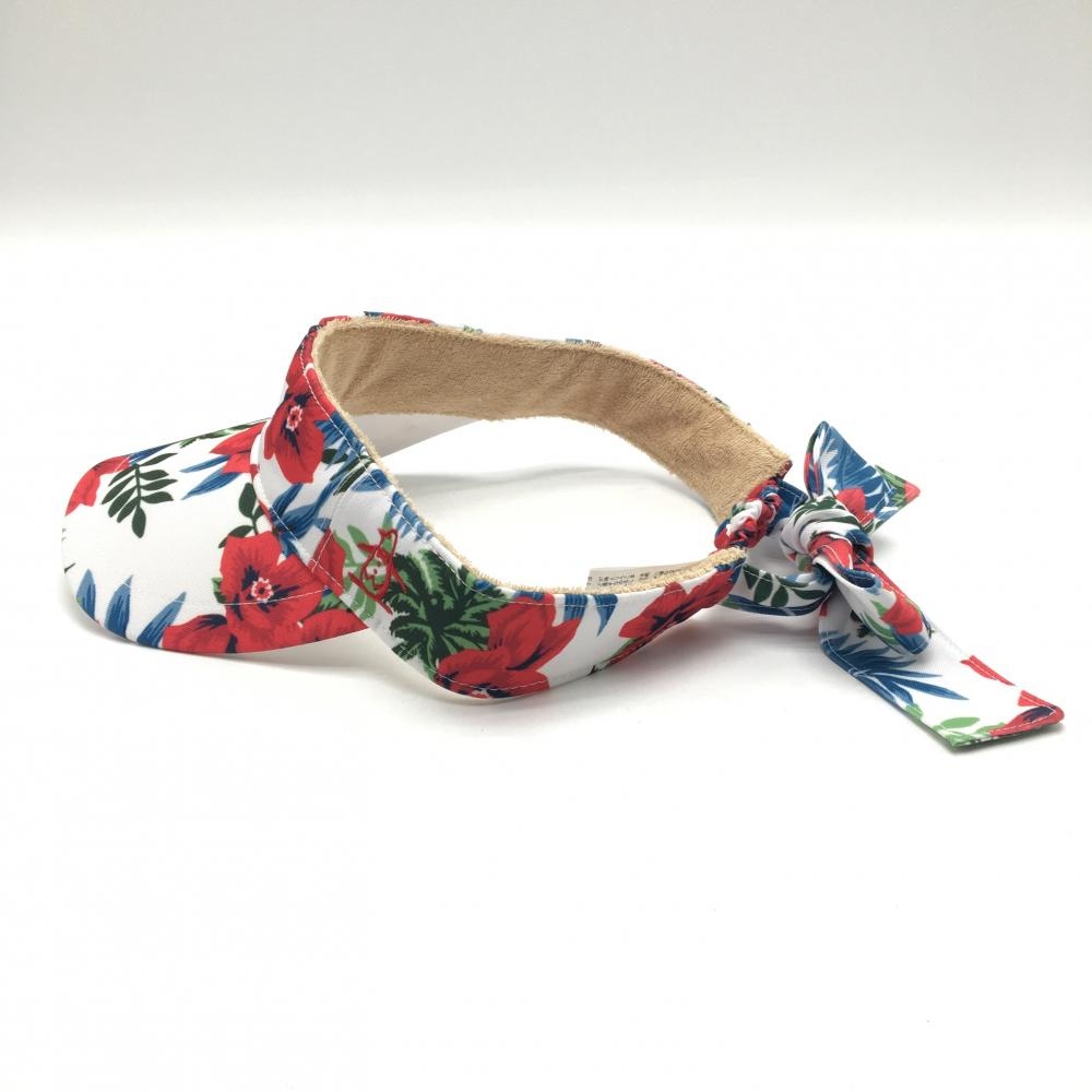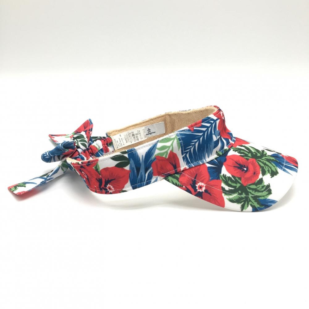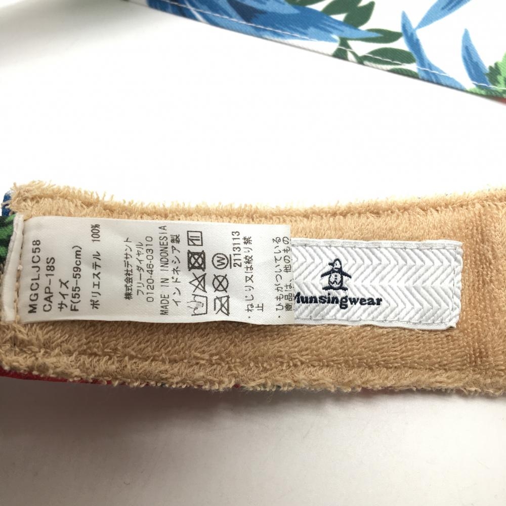 【美品】マンシングウェア サンバイザー 白×レッド 花柄 後ろリボン レディース F(55-59cm) ゴルフウェア Munsingwear