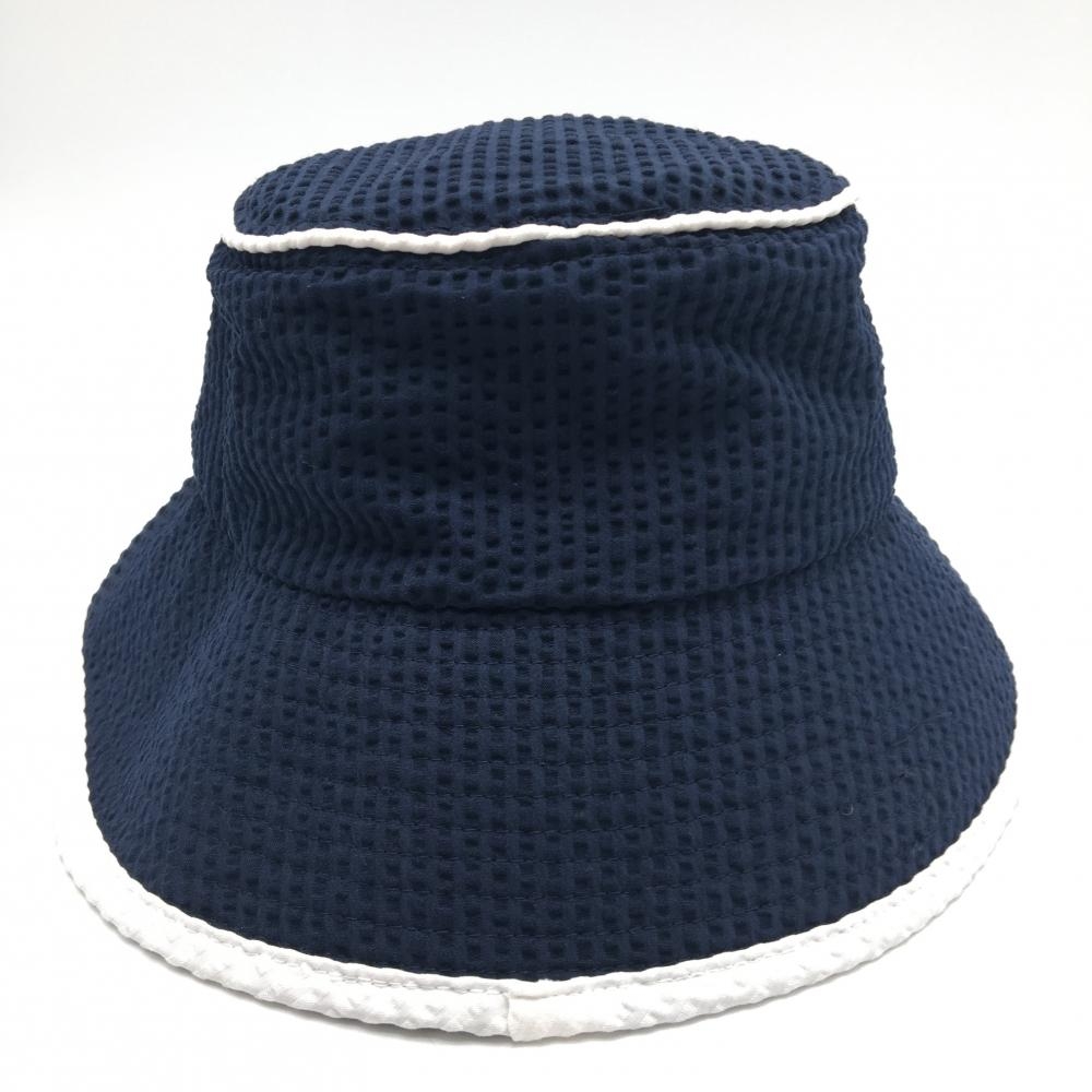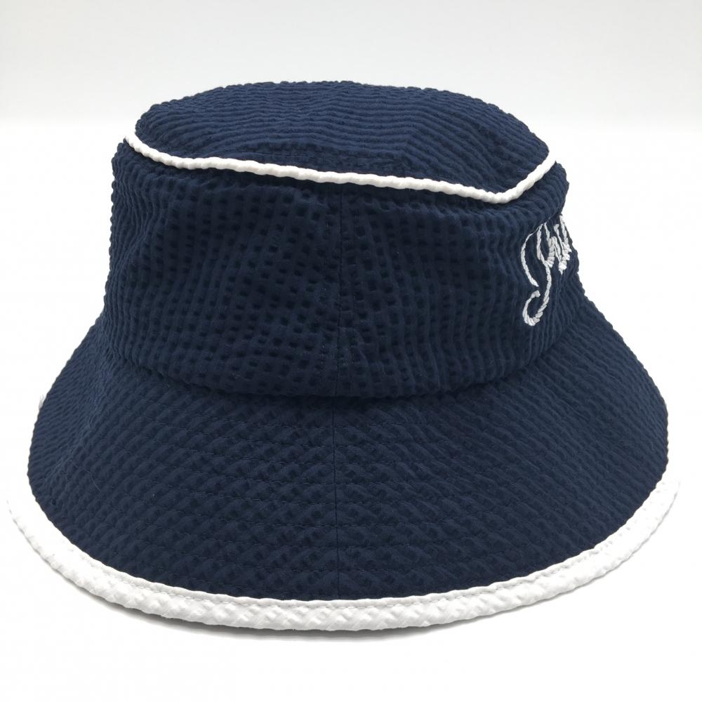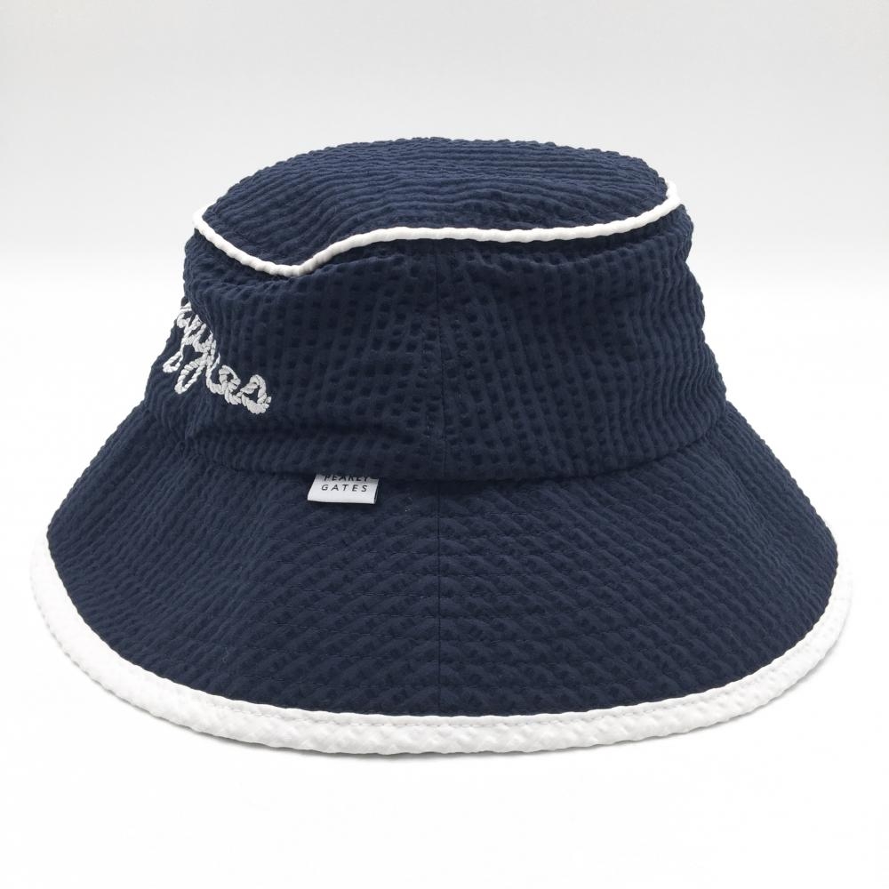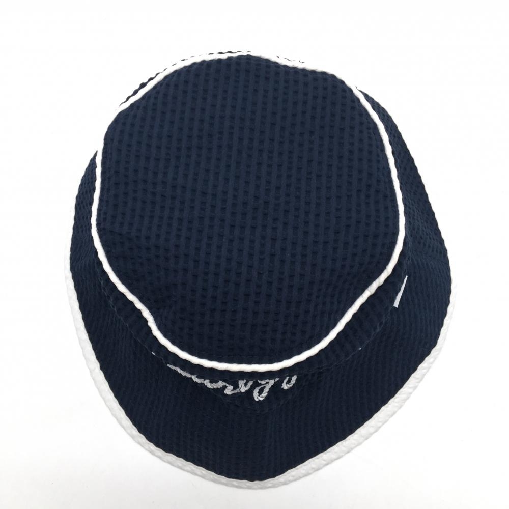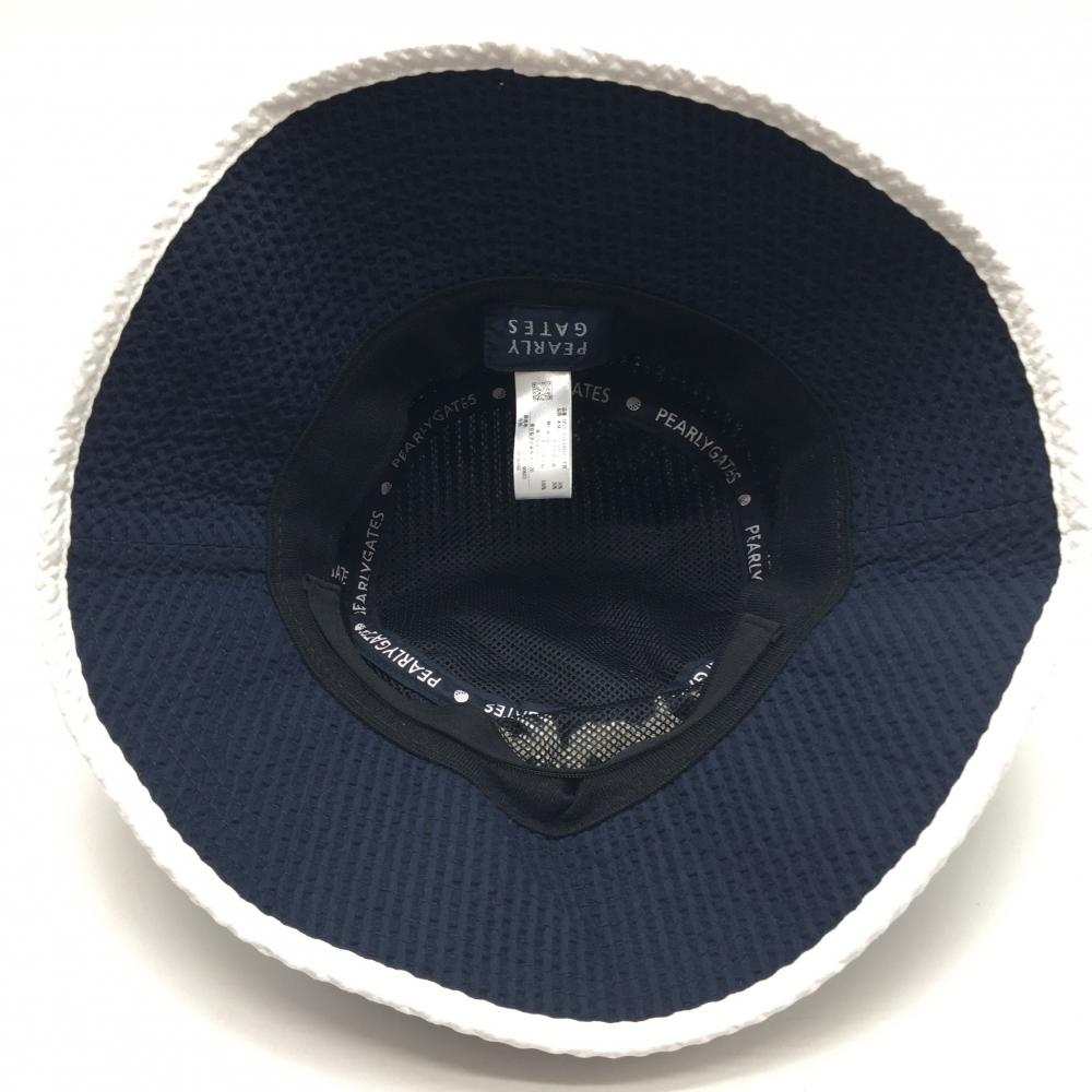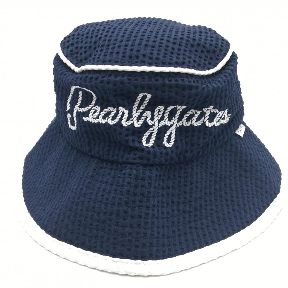 【超美品】パーリーゲイツ バケットハット ネイビー×白 織生地 ロゴ刺しゅう 凹凸 FR ゴルフウェア 2023年モデル PEARLY GATES