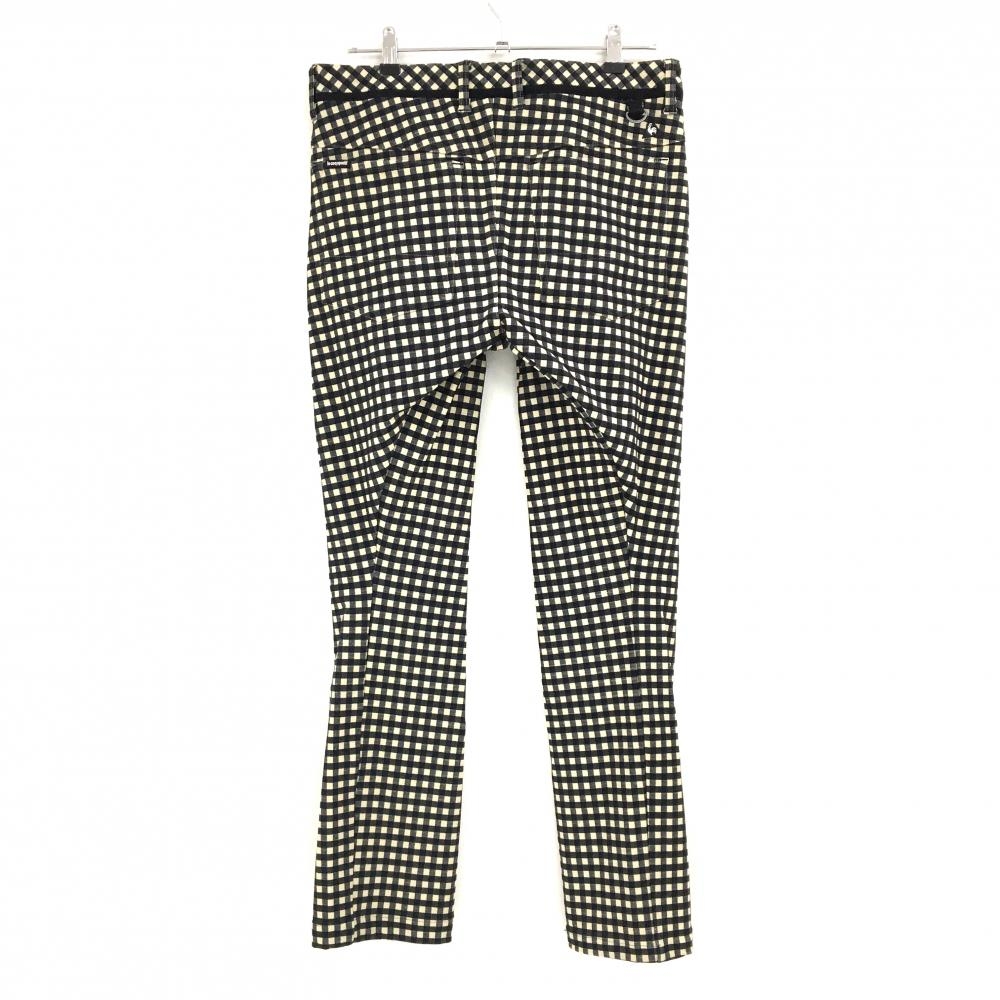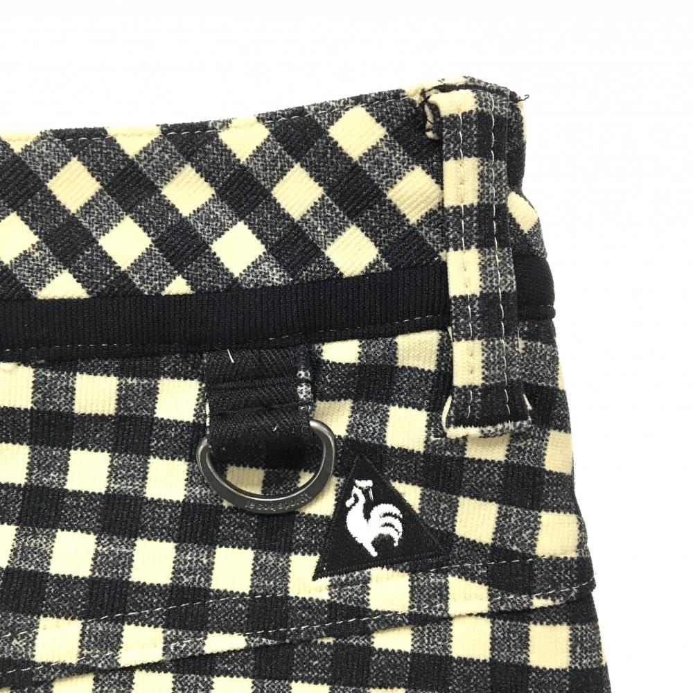 【美品】ルコックゴルフ パンツ ライトベージュ系×黒 チェック柄 バックロゴ刺しゅう ストレッチ メンズ 82 ゴルフウェア le coq sportif