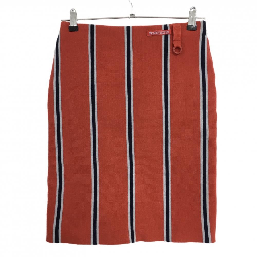【美品】パーリーゲイツ ニットスカート レッド系×ネイビー×グレー ストライプ 裏地付き レディース 0(S) ゴルフウェア PEARLY GATES