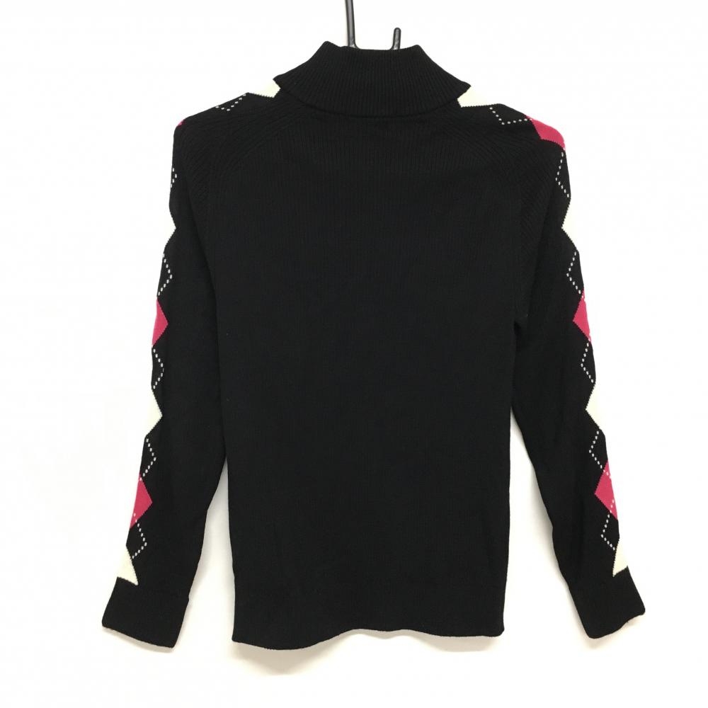 【美品】ポールスチュアートスポーツ ハイネックセーター 黒×ピンク 袖アーガイルライン レディース M ゴルフウェア Paul Stuart SPORT