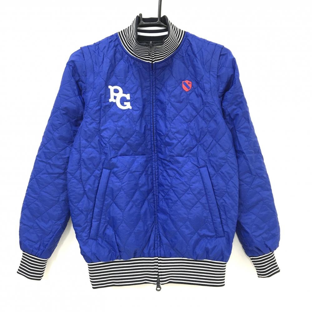 【美品】パーリーゲイツ 4WAY中綿リバーシブルジャケット ネイビー×白 片面ブルー レディース 0(S) ゴルフウェア PEARLY GATES