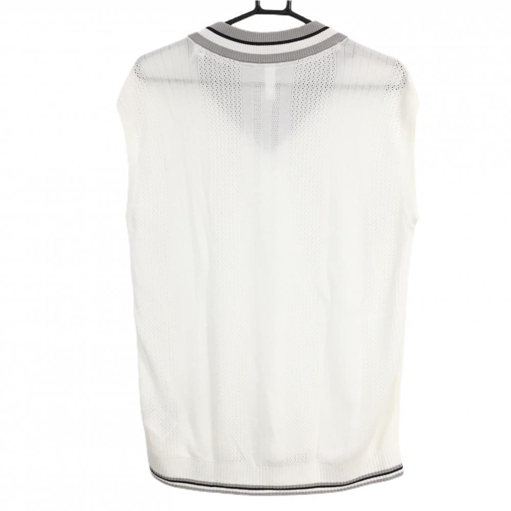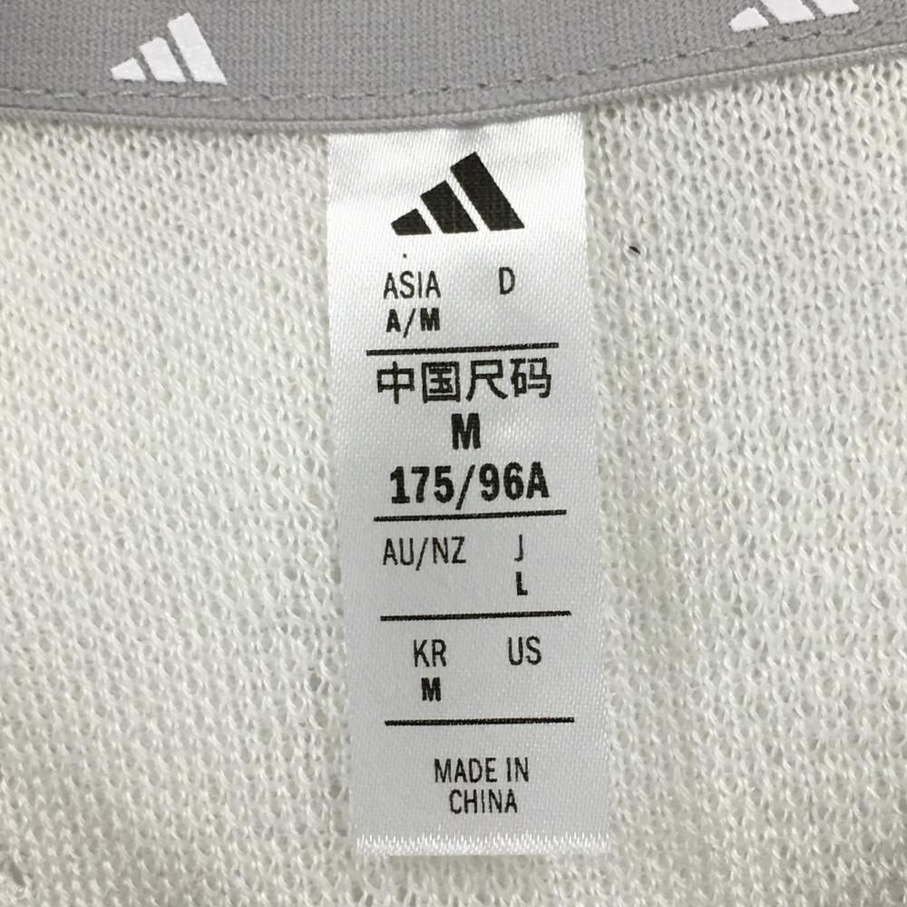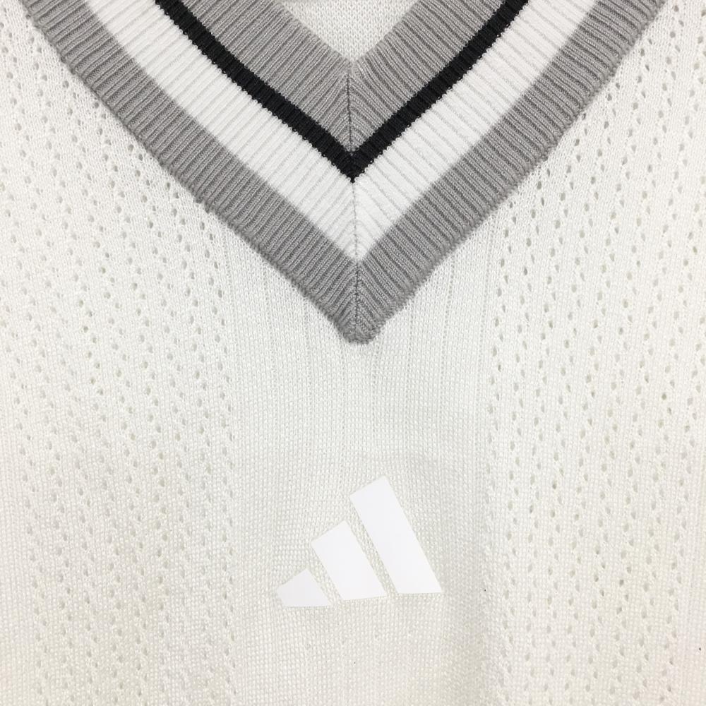 【超美品】アディダス ニットベスト 白×ライトグレー Vネック ロゴプリント メンズ L ゴルフウェア 2025年モデル adidas