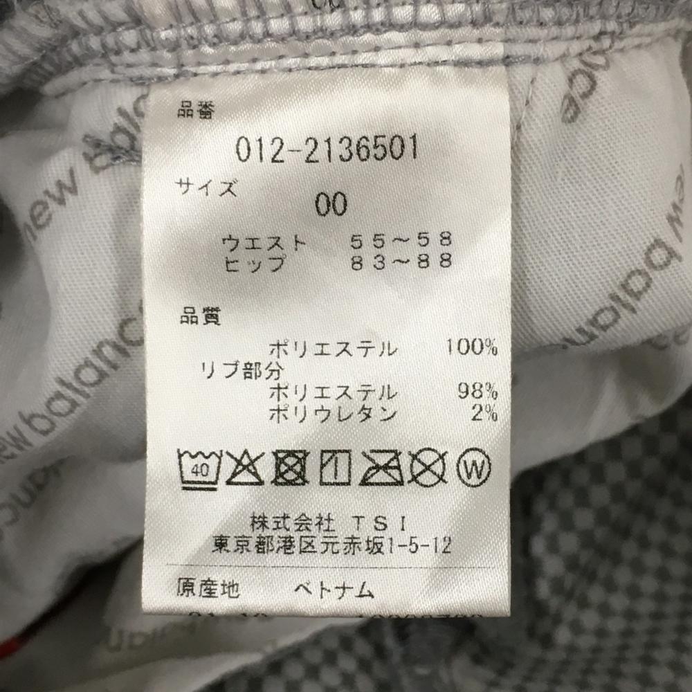 【美品】ニューバランスゴルフ パンツ 杢グレー×白 裾ロゴ ウエストゴム ストレッチ レディース 00(XS) ゴルフウェア New Balance