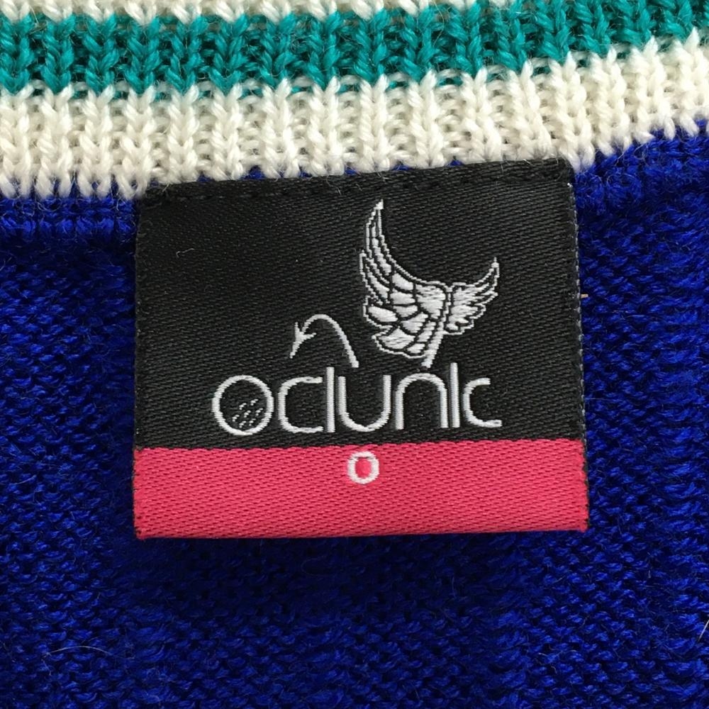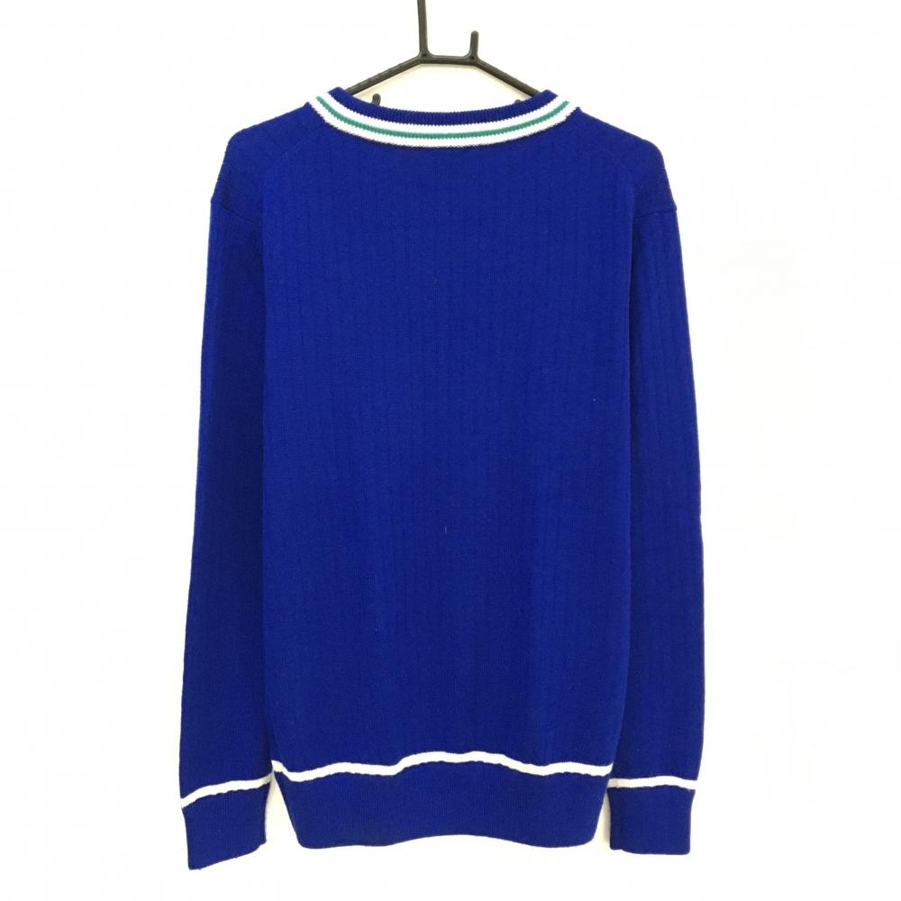 【美品】クランク セーター ブルー×白 Vネック 胸元ワッペン ウール混 ニット メンズ O ゴルフウェア CLUNK