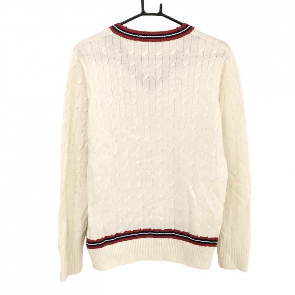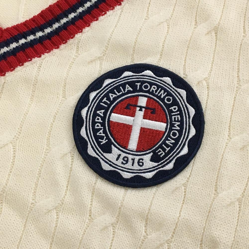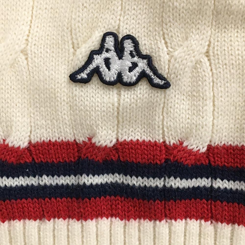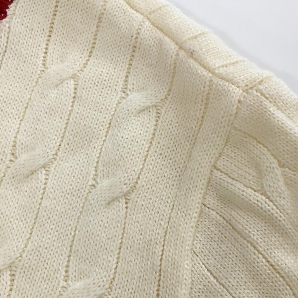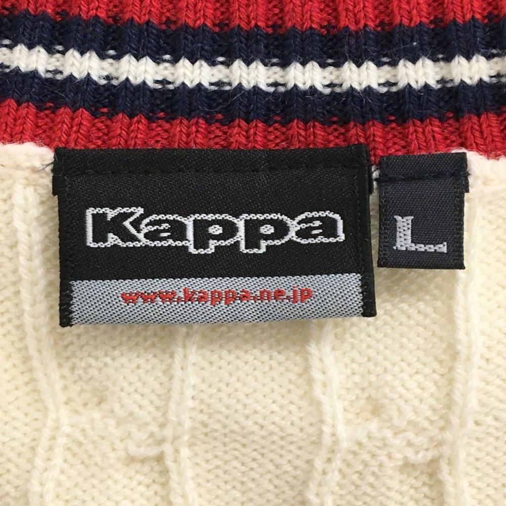 カッパ セーター アイボリー×レッド ケーブル編み ニット ウール混 Vネック メンズ L ゴルフウェア Kappa